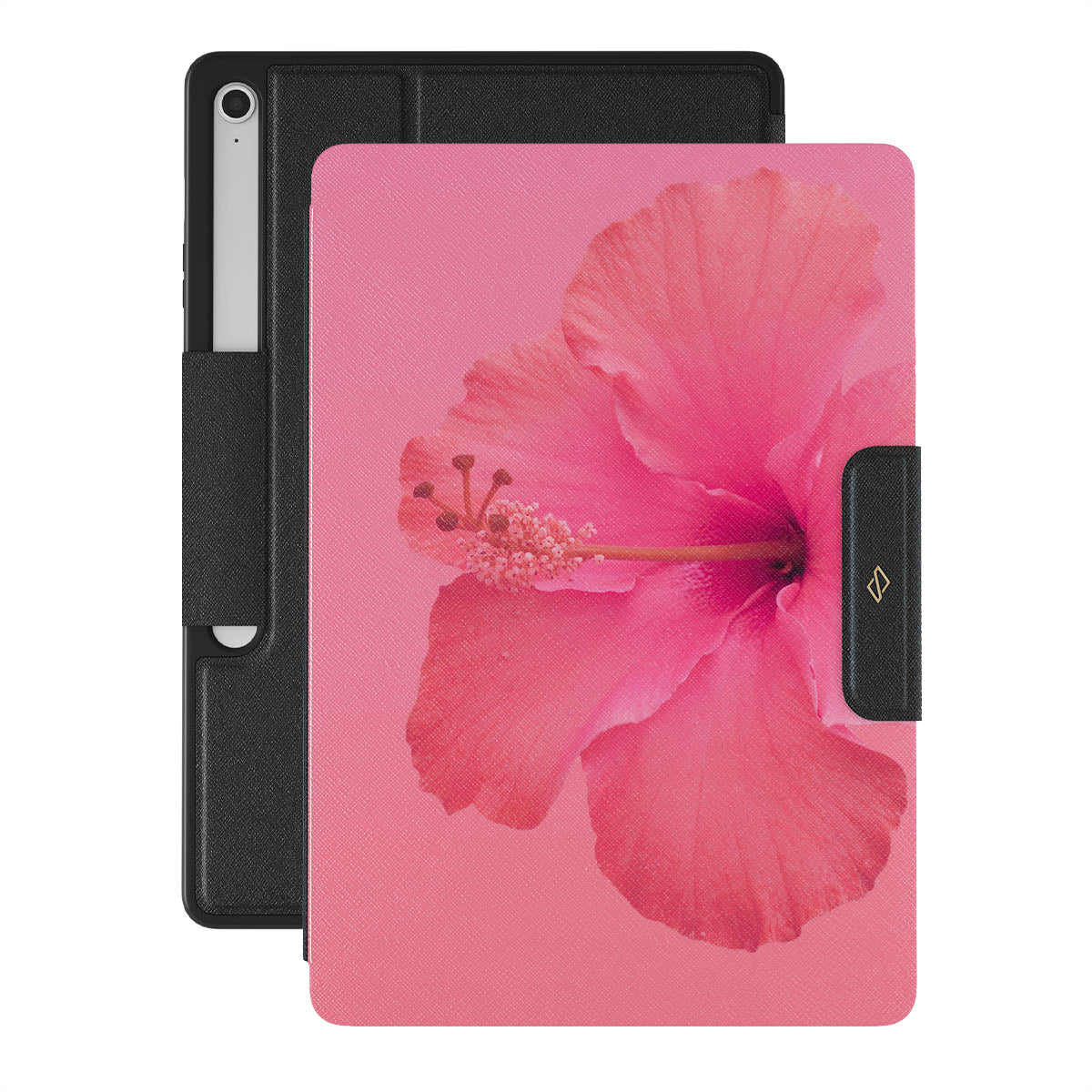 Our Island Girl Samsung Galaxy Tab S10+ FE folio case design bursts with the fiery red of a hibiscus in full bloom against a dreamy pink backdrop. Perfect for those who embody the spirit of a sun-kissed island retreat.