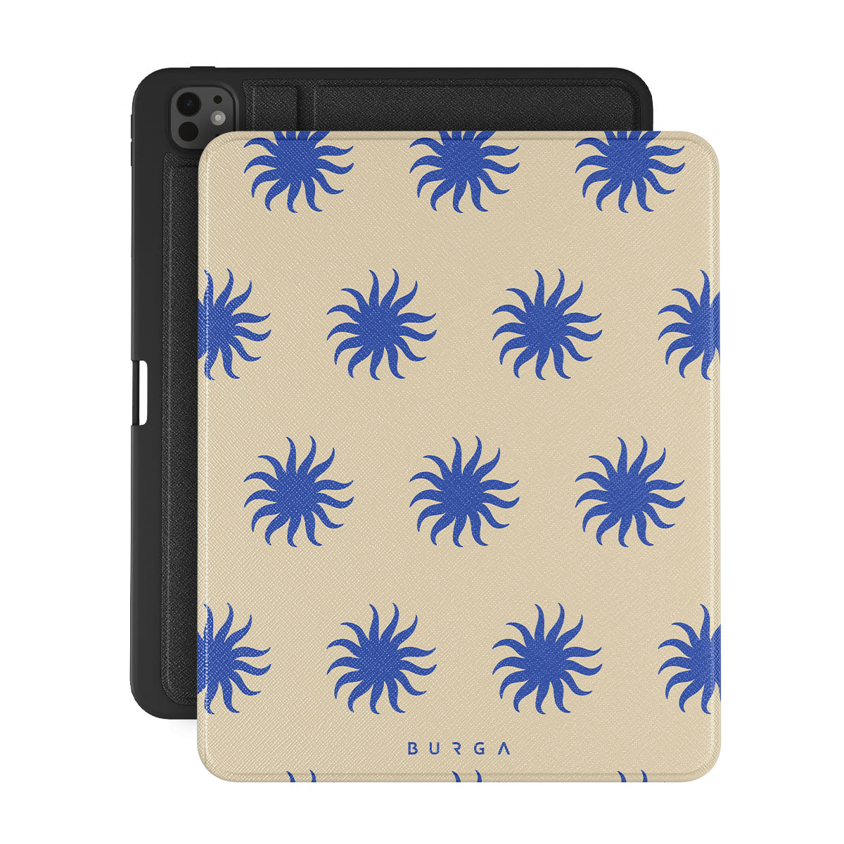 Immerse yourself in the vibrant spirit of the tropics with our La Playa iPad Pro 13 (8th/7th Gen) folio case. This design boasts a warm, sandy beige base highlighted by striking blue motifs, reminiscent of the breezy Caribbean islands. It’s a stylish celebration of coastal beauty.