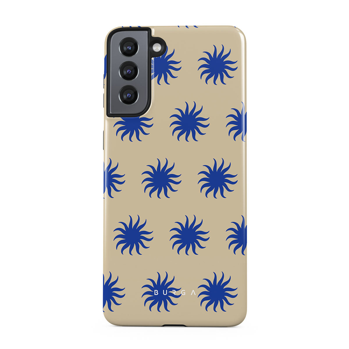 Immerse yourself in the vibrant spirit of the tropics with our La Playa Samsung Galaxy S21 phone case. This design boasts a warm, sandy beige base highlighted by striking blue motifs, reminiscent of the breezy Caribbean islands. It’s a stylish celebration of coastal beauty.