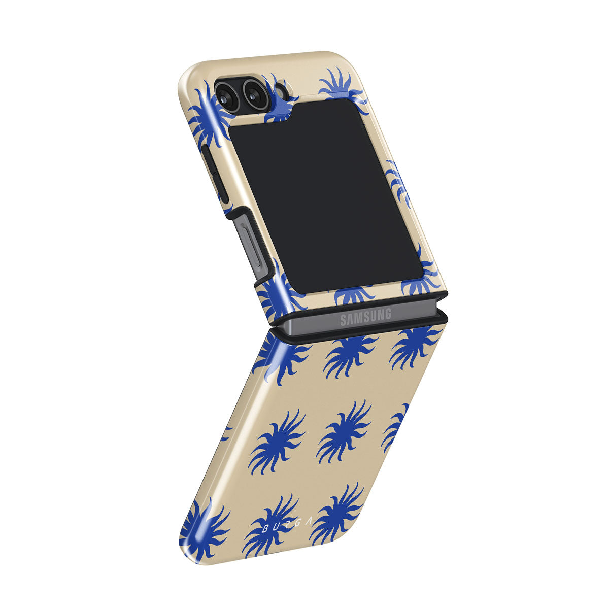 Immerse yourself in the vibrant spirit of the tropics with our La Playa Samsung Galaxy Z Flip 5 phone case. This design boasts a warm, sandy beige base highlighted by striking blue motifs, reminiscent of the breezy Caribbean islands. It’s a stylish celebration of coastal beauty.
