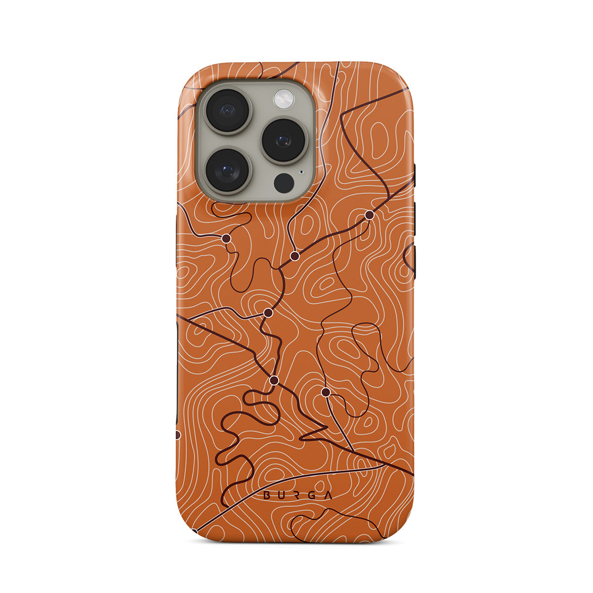 This design features: orange, map lines, abstract pattern