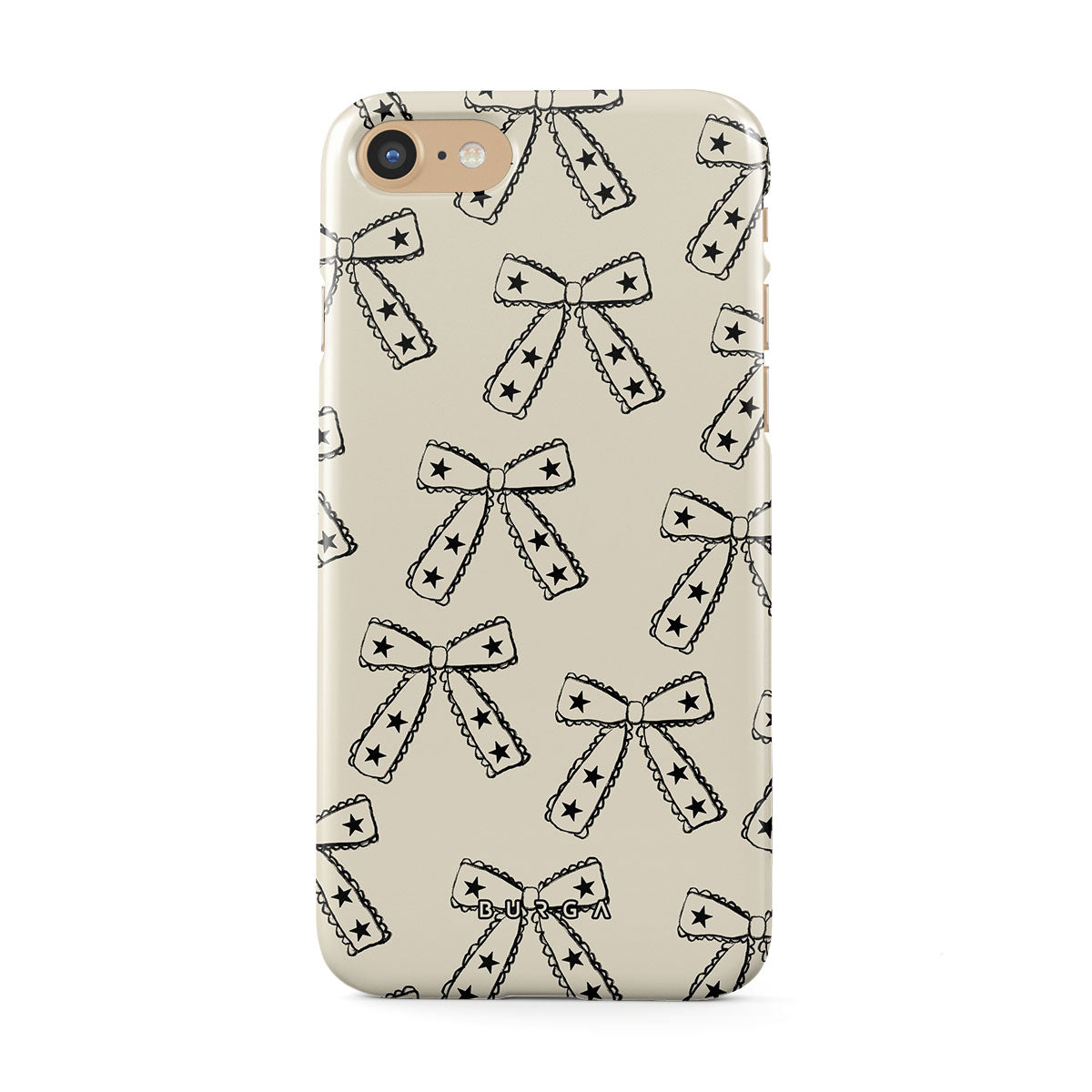 Shine on, Lone Star. Starry bows on a beige background bring a fun twist to your look. This iPhone 7 / iPhone 8 phone case design is ideal for those who march to the beat of their own drum and make their own fashion rules.