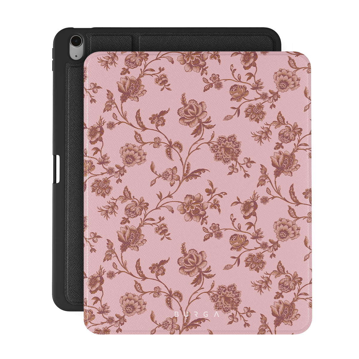 The Lover iPad Air 13 (7th/6th Gen) folio case design: because you're a Lover, not a fighter. Delicate floral motifs across a soft pink background capture the essence of timeless beauty and rustic elegance. Perfect for modern-day cowgirls with a vintage heart.