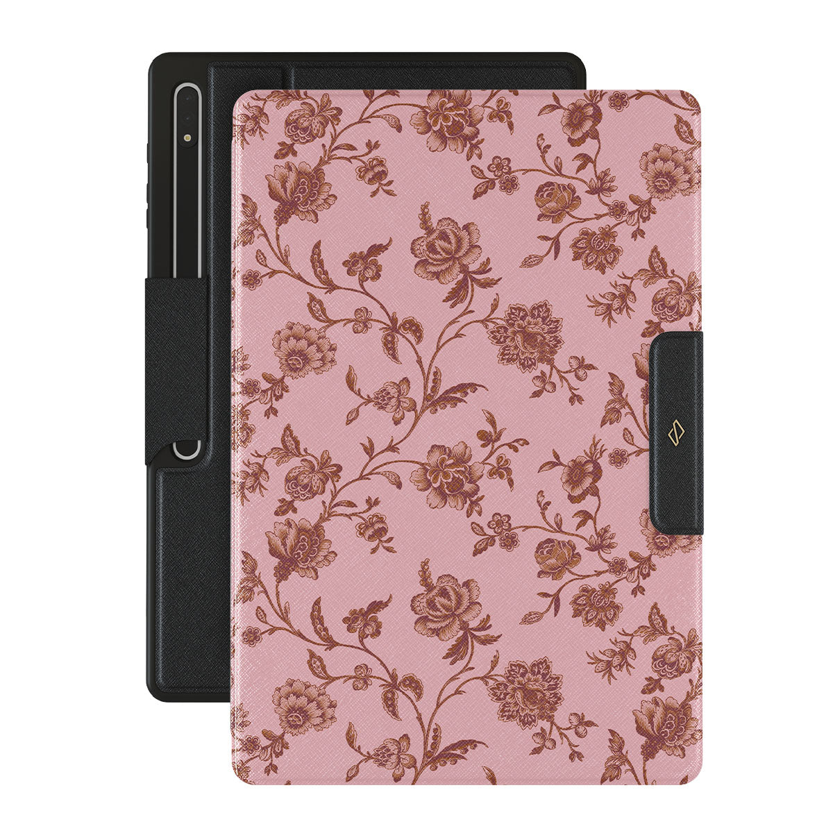 The Lover Samsung Galaxy Tab S9 Ultra folio case design: because you're a Lover, not a fighter. Delicate floral motifs across a soft pink background capture the essence of timeless beauty and rustic elegance. Perfect for modern-day cowgirls with a vintage heart.