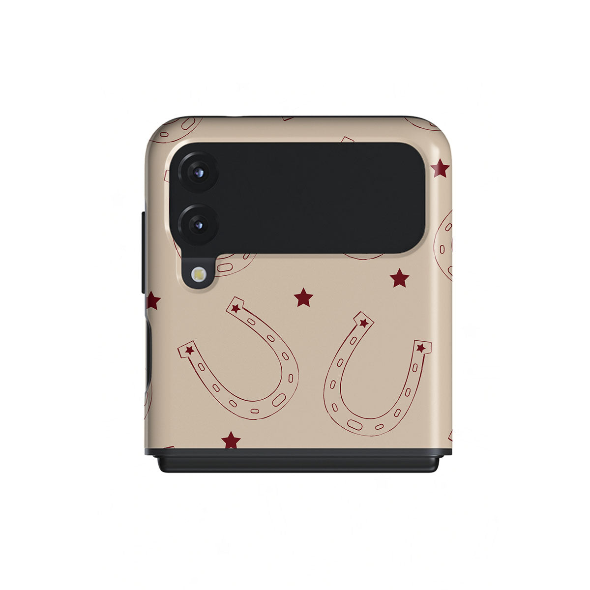 Horseshoes for luck, stars for style. Keep fortune on your side with our Lucky Charm Samsung Galaxy Z Flip 3 phone case. This design is a playful take on traditional symbols of luck. The earthy tones make it a versatile accessory for any western-inspired outfit—and not only.