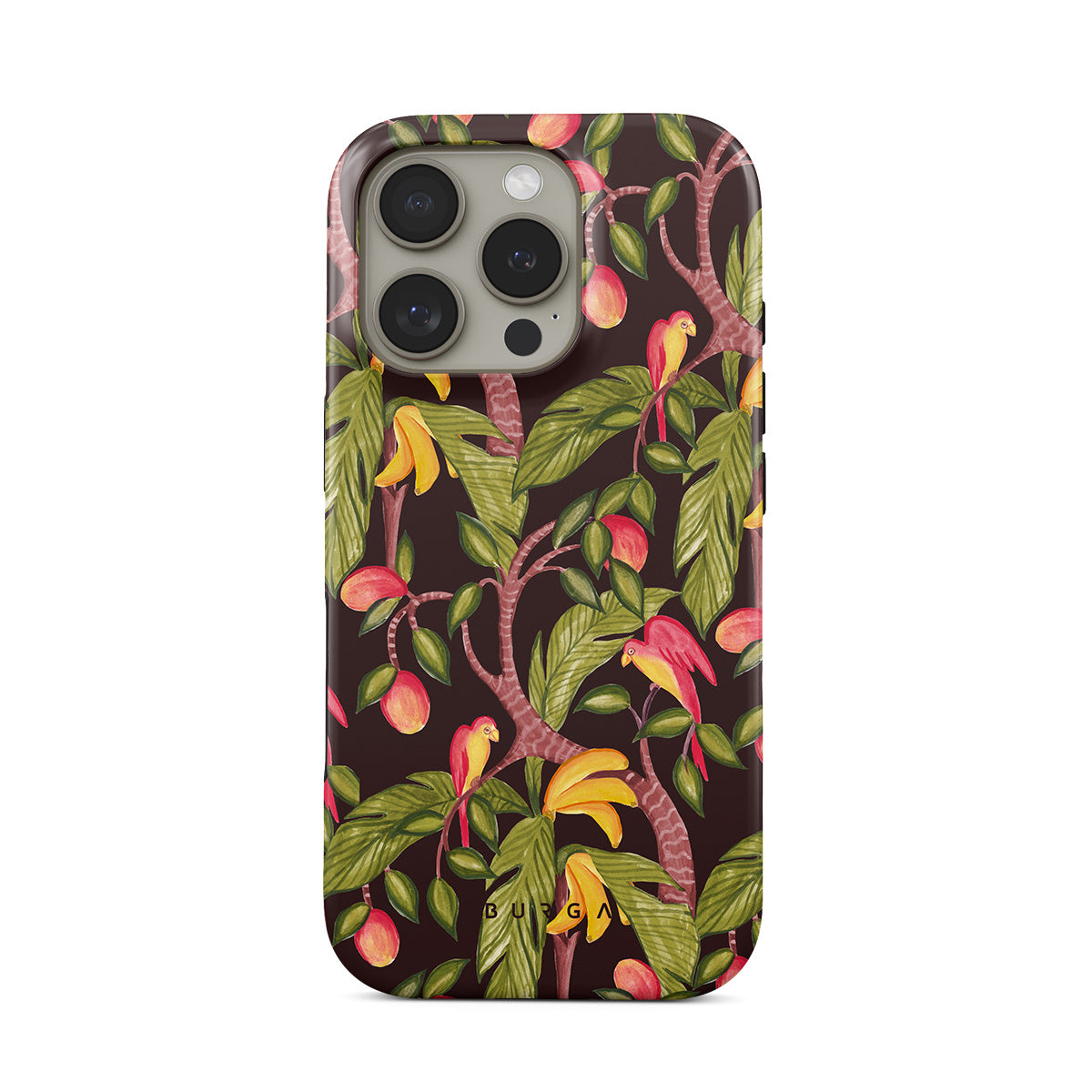 A lush botanical fantasy where ripe mangoes hang like forbidden fruit. Deep greens and juicy oranges pull you into a tropical escape. If this iPhone 16 Pro Max phone case design had a voice, it would purr.
