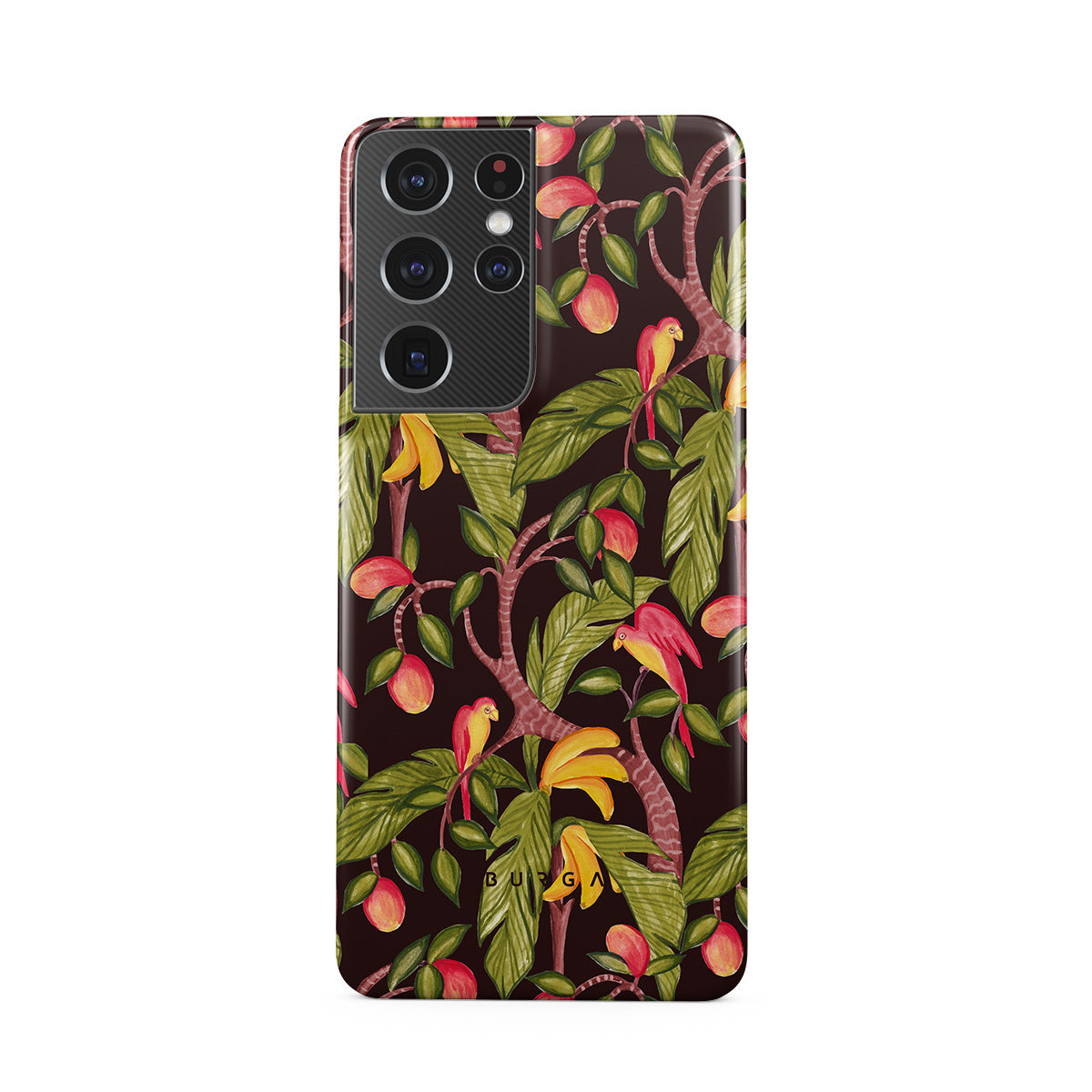 A lush botanical fantasy where ripe mangoes hang like forbidden fruit. Deep greens and juicy oranges pull you into a tropical escape. If this Samsung Galaxy S21 Ultra phone case design had a voice, it would purr.