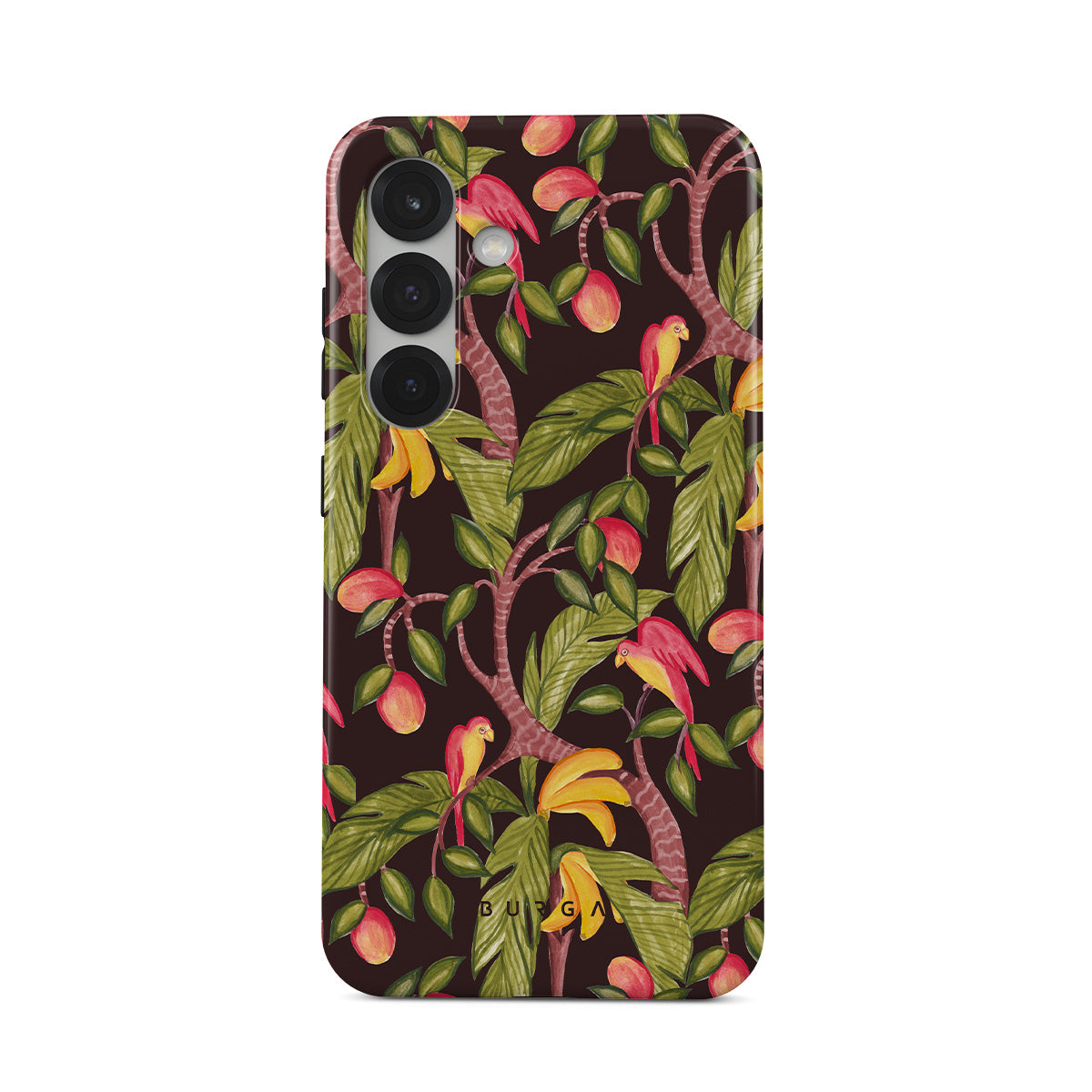 A lush botanical fantasy where ripe mangoes hang like forbidden fruit. Deep greens and juicy oranges pull you into a tropical escape. If this Samsung Galaxy S25 Plus phone case design had a voice, it would purr.