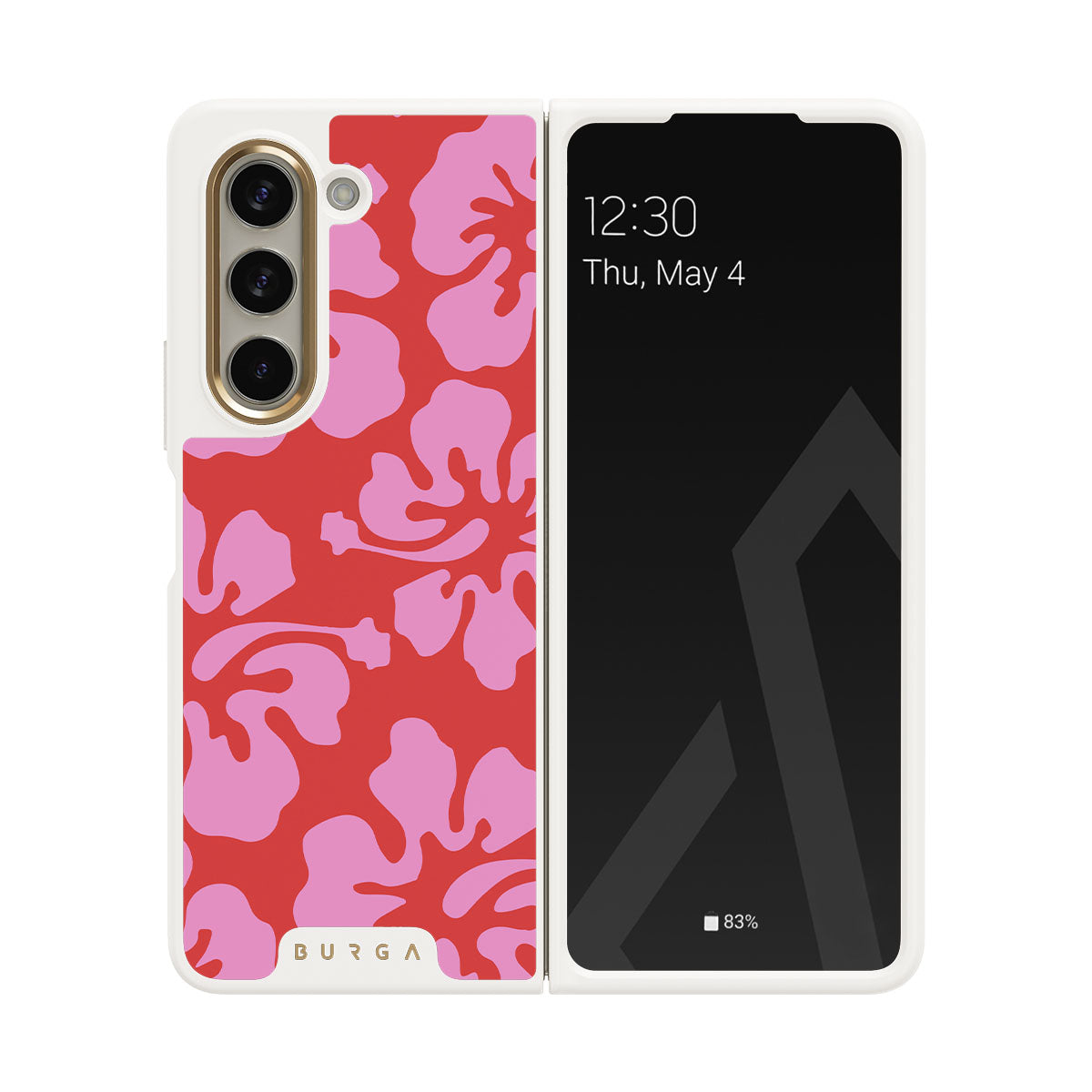 Dive into a sea of floral fantasy with Me Gustas Tu. Featuring oversized coral-toned blooms against a fiery backdrop, this Samsung Galaxy Z Fold 5 phone case design captures the wild heart of tropical flowers—perfect for those who want to carry a touch of exotic flair.