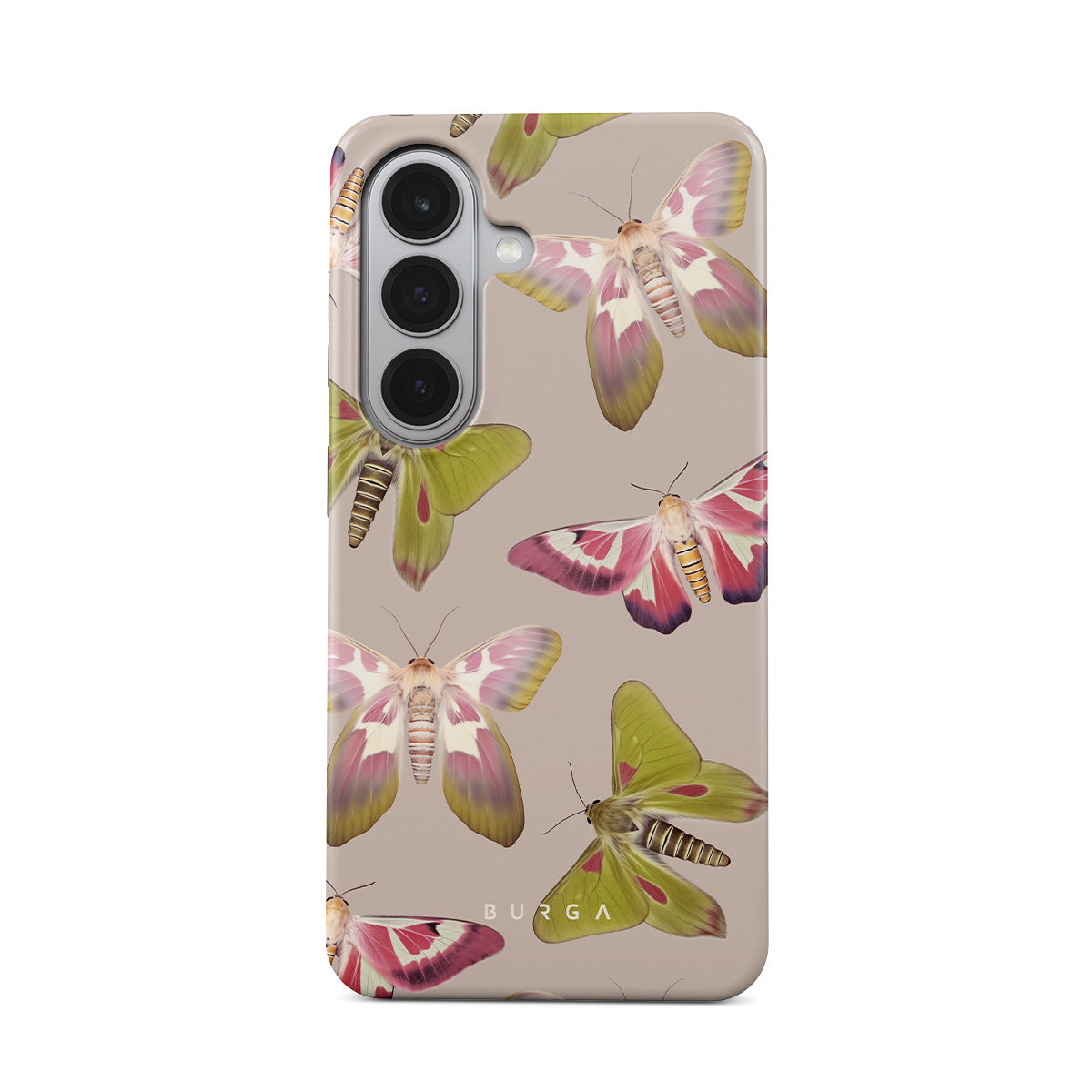 A tapestry of muted-toned moths — their wing patterns echoing tales of transformation and resilience found in nature's delicate beings. These moths, wings wide, serve as silent mentors, teaching us that every phase of life and change holds its own magic and mystery. Discover our Metamorphosis Samsung Galaxy S26 phone casedesign.