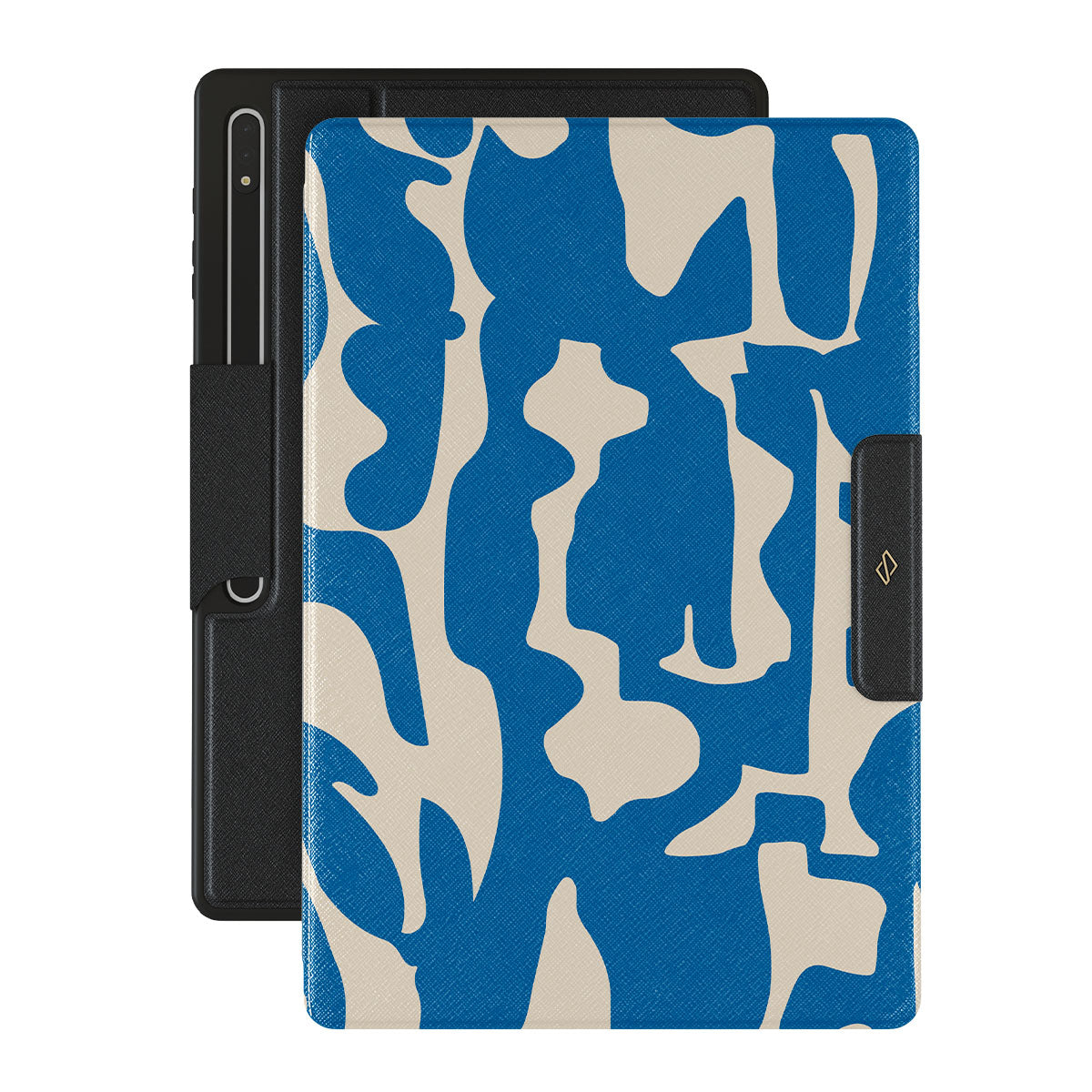 Indulge in the exquisite elegance of Mirage. Against a canvas of deep, enigmatic blue, luminous shapes gracefully disrupt the darkness, creating a captivating visual spectacle. Let this Samsung Galaxy Tab S10 Ultra folio case be a symbol of your impeccable taste and magnetic charm.
