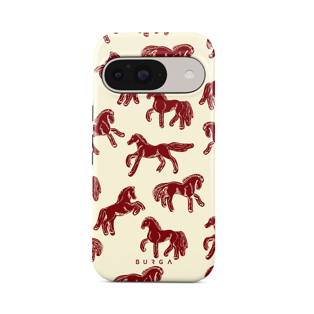 It's time to unleash your wild side with the Mustang design. Bold red horses gallop across a nude background, capturing the spirit of untamed adventure. This Google Pixel 10 phone case is perfect for the free-spirited souls ready to ride into the unknown.