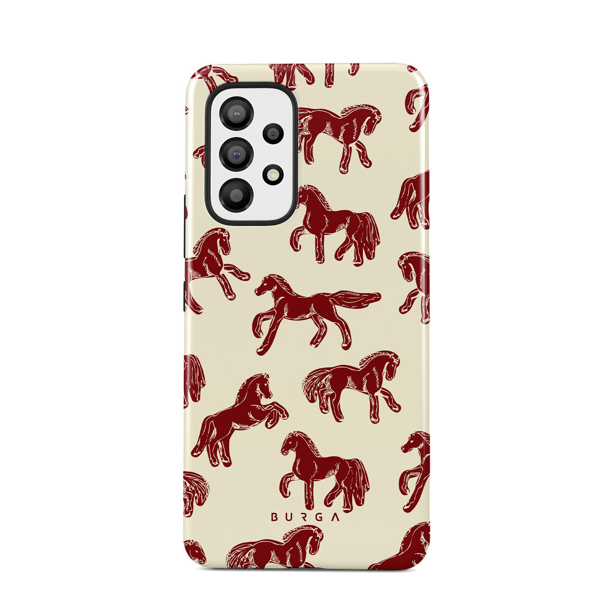 It's time to unleash your wild side with the Mustang design. Bold red horses gallop across a nude background, capturing the spirit of untamed adventure. This Samsung Galaxy A33 phone case is perfect for the free-spirited souls ready to ride into the unknown.