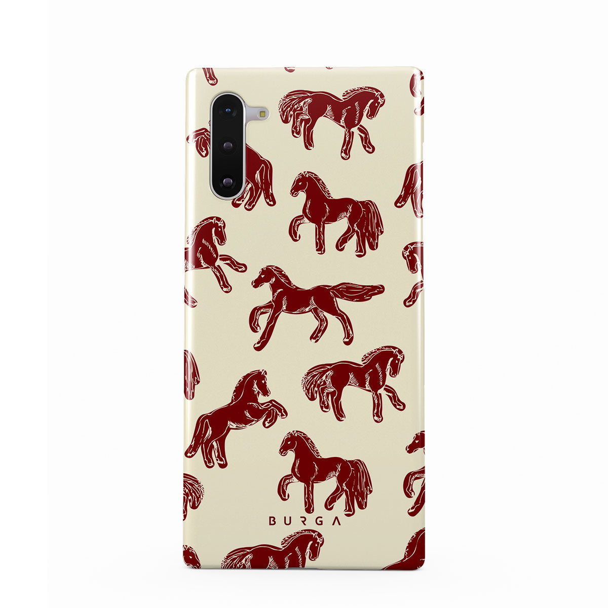It's time to unleash your wild side with the Mustang design. Bold red horses gallop across a nude background, capturing the spirit of untamed adventure. This Samsung Galaxy Note 10 phone case is perfect for the free-spirited souls ready to ride into the unknown.