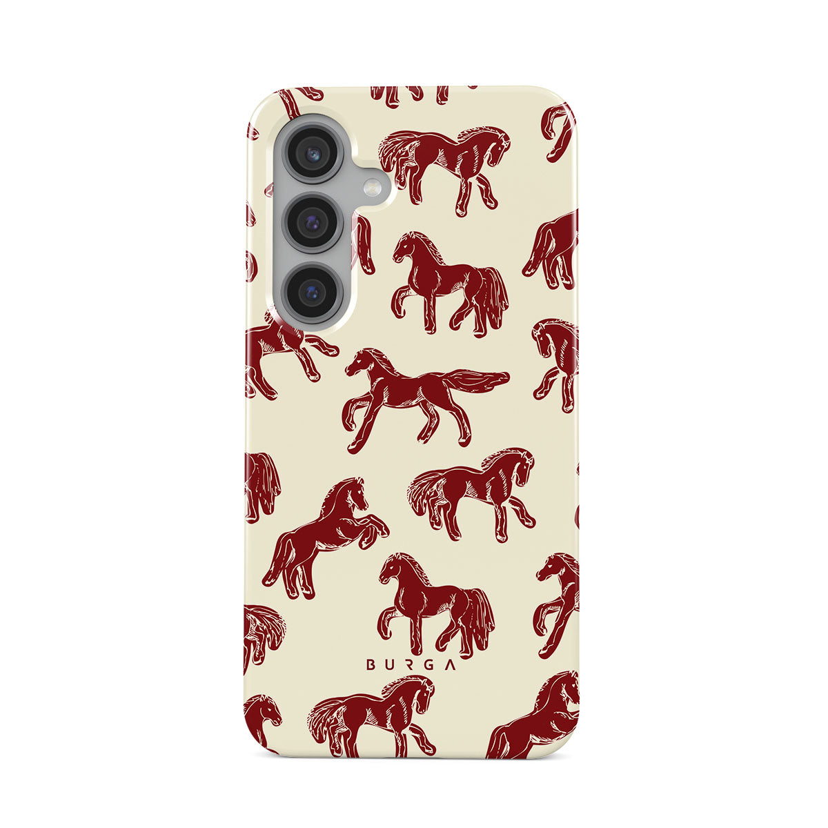 It's time to unleash your wild side with the Mustang design. Bold red horses gallop across a nude background, capturing the spirit of untamed adventure. This Samsung Galaxy S24 Plus phone case is perfect for the free-spirited souls ready to ride into the unknown.