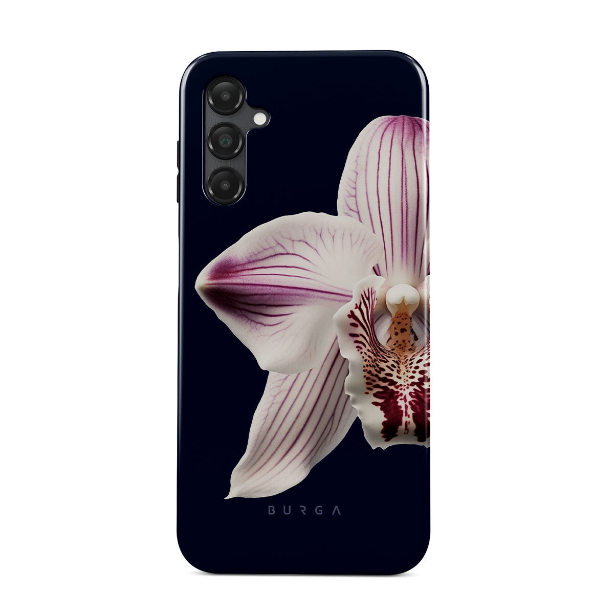 The white orchid blooms boldly upon a night sky blue, a beacon of clarity in the darkness. Our Nectar Samsung Galaxy A14 5G phone case design speaks to the soul's desire to find light within, to illuminate the hidden paths of self-discovery that only reveal themselves under the cloak of introspection.