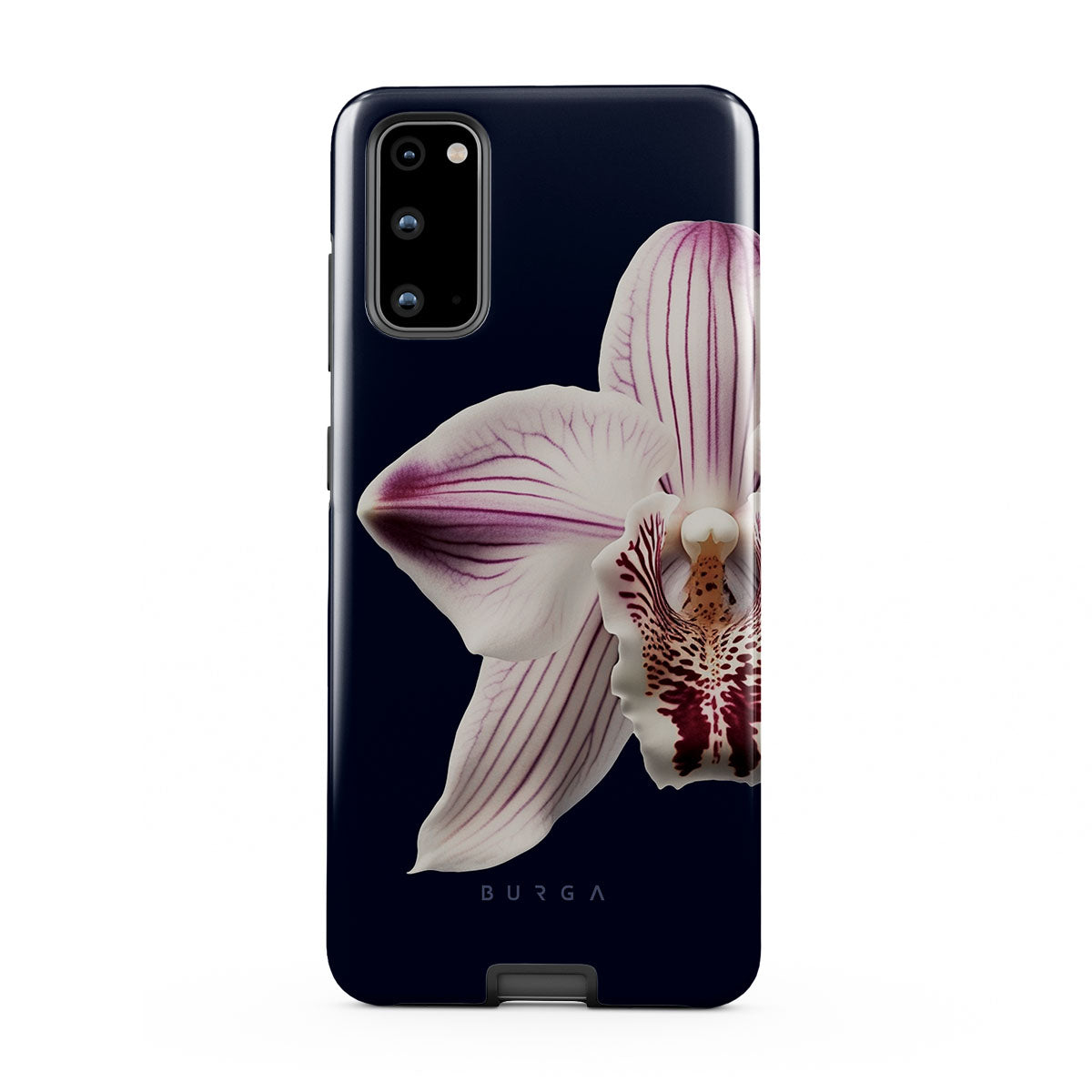 The white orchid blooms boldly upon a night sky blue, a beacon of clarity in the darkness. Our Nectar Samsung Galaxy S20 FE 4G / 5G phone case design speaks to the soul's desire to find light within, to illuminate the hidden paths of self-discovery that only reveal themselves under the cloak of introspection.
