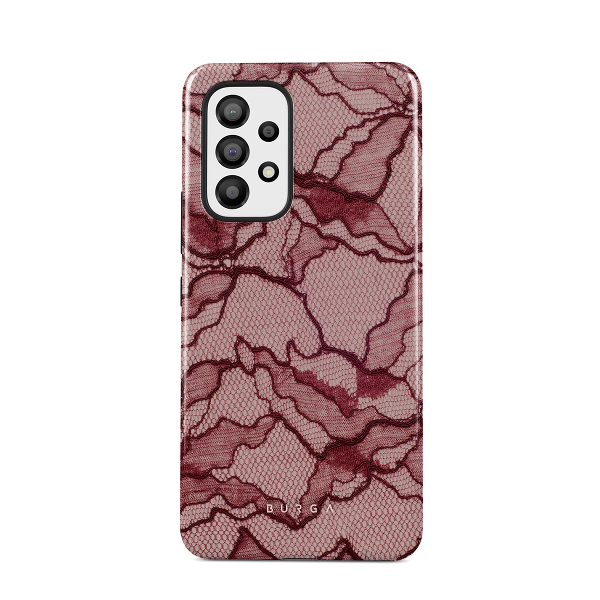 Channel your inner power with our Office Siren Samsung Galaxy A33 phone case design. A soft rosé backdrop and dark pink lace blend elegance and boldness, perfect for those who make quiet yet undeniable statements with confidence.