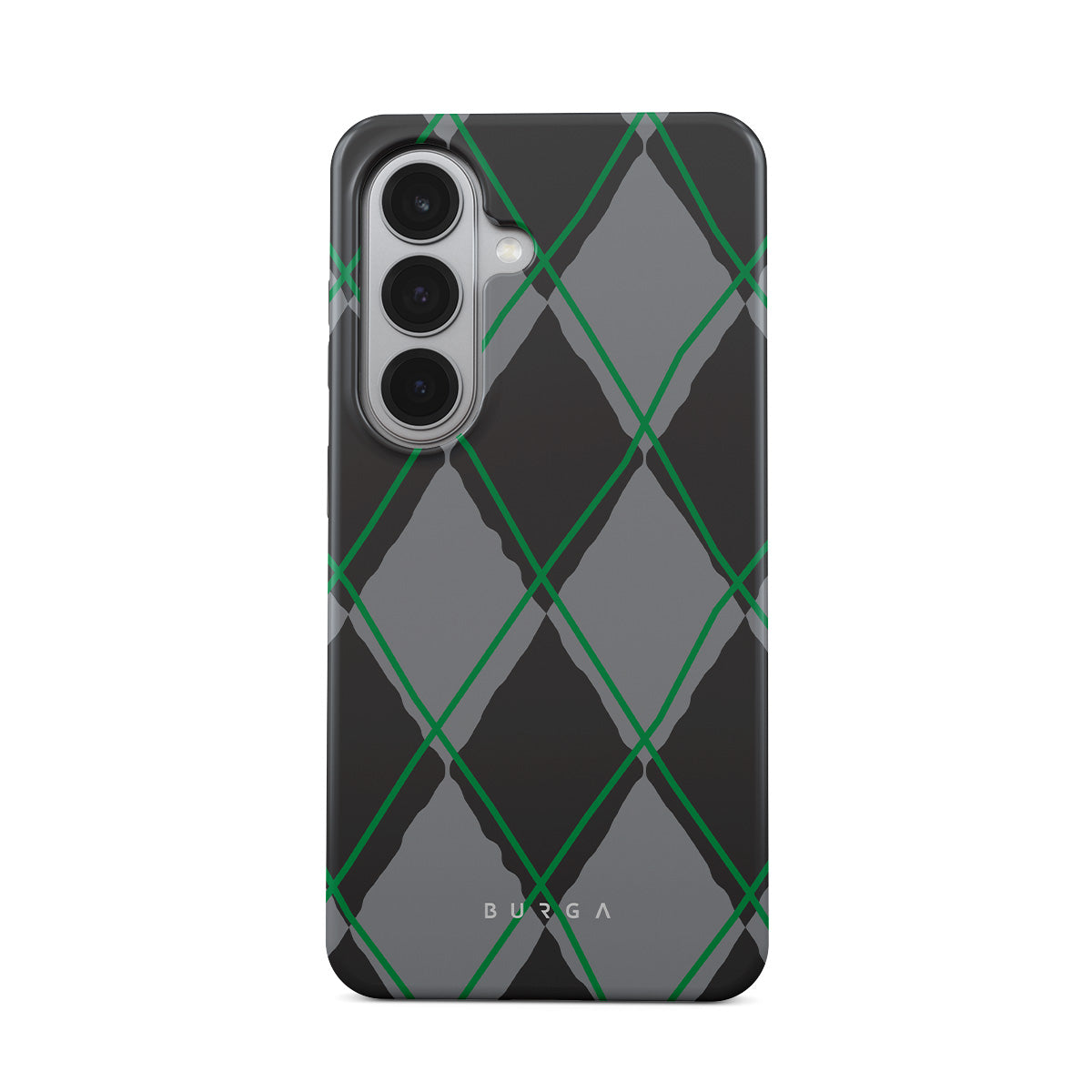 This design features: diamond pattern, green and gray, classic pattern, geometric pattern