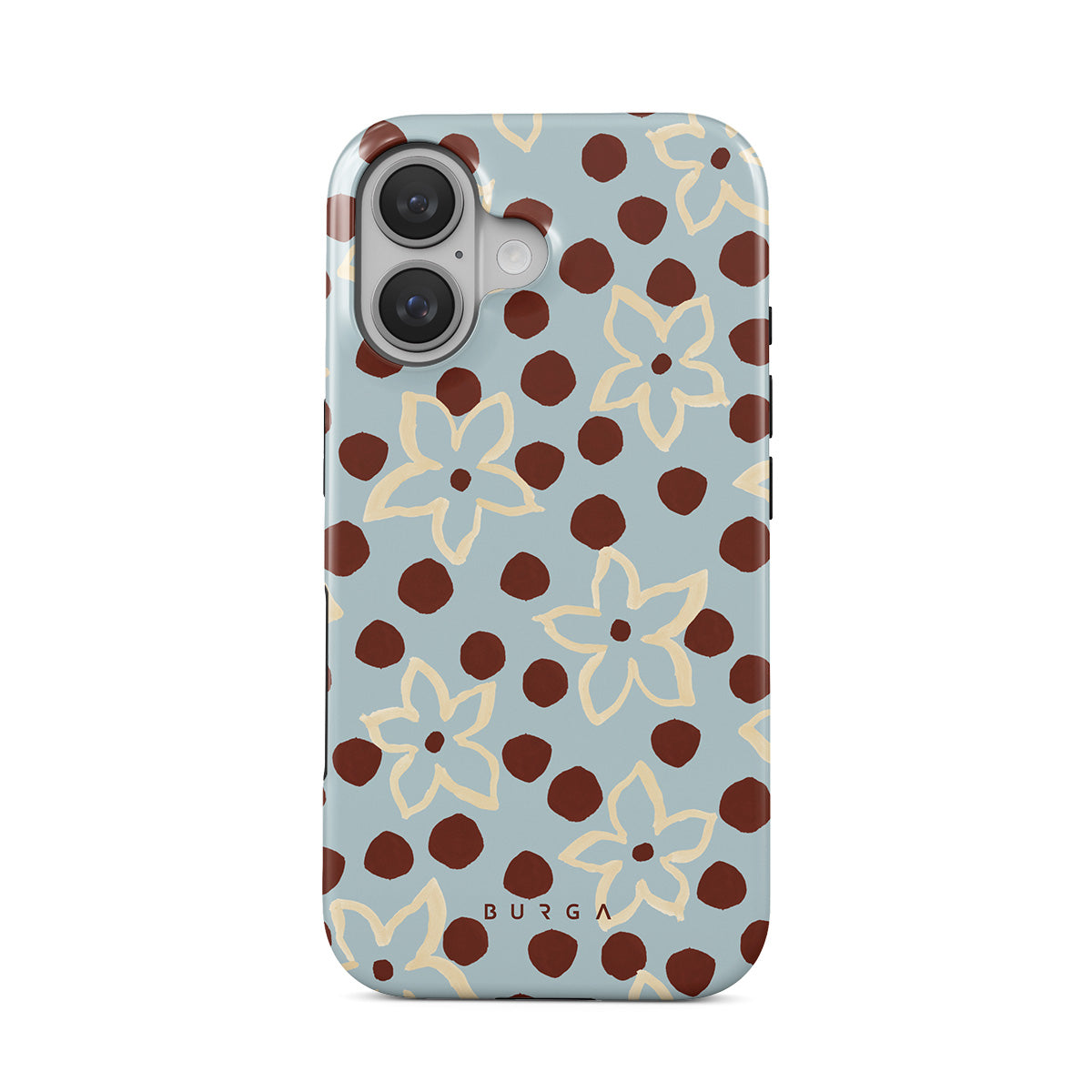 The Frutaria iPhone 16 phone case design design: retro surf motel wallpaper meets vintage ceramics. The soft florals, earthy dots, and cool-toned palette give major “forgotten seaside town in the ‘70s” energy.