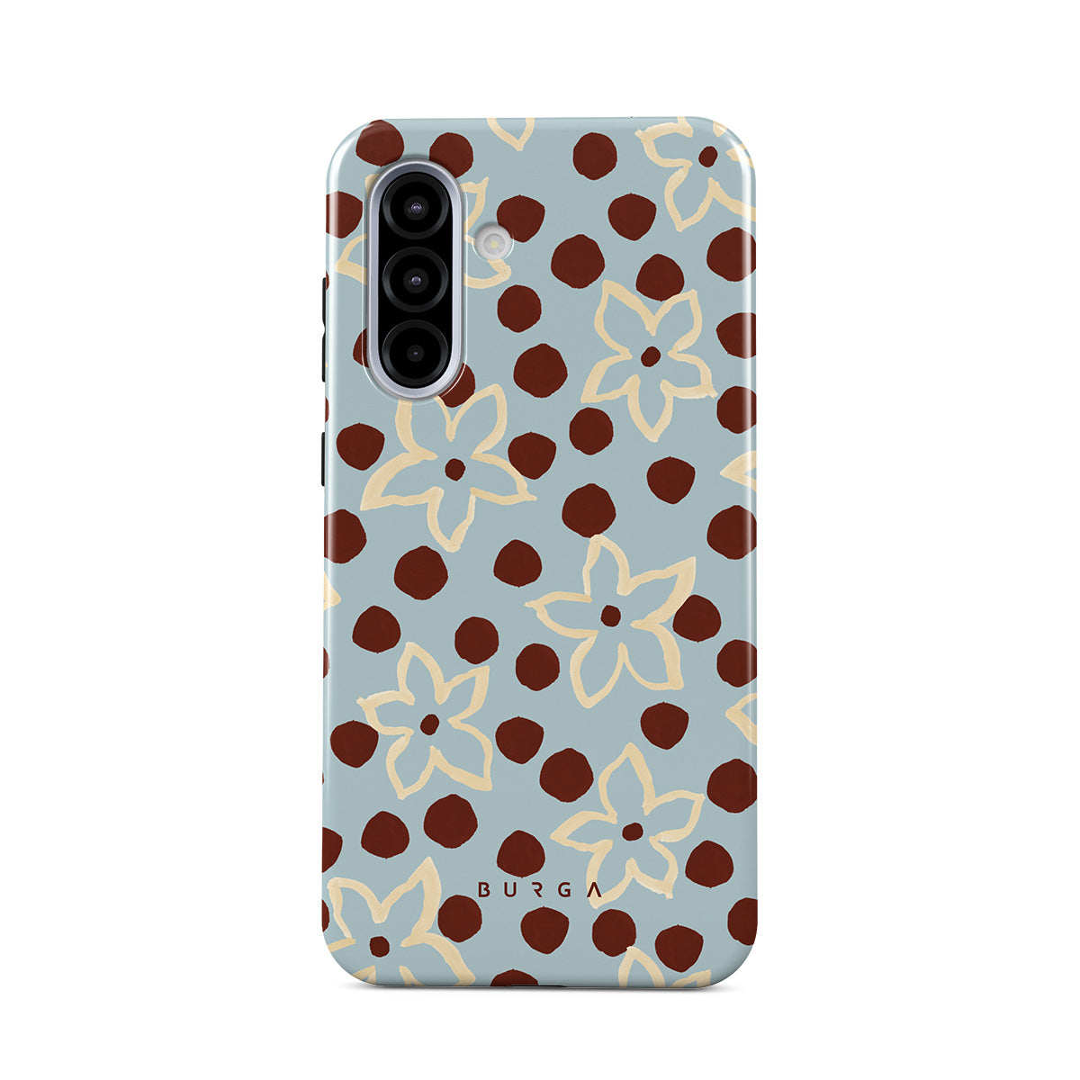 The Frutaria Samsung Galaxy A56 5G phone case design design: retro surf motel wallpaper meets vintage ceramics. The soft florals, earthy dots, and cool-toned palette give major “forgotten seaside town in the ‘70s” energy.