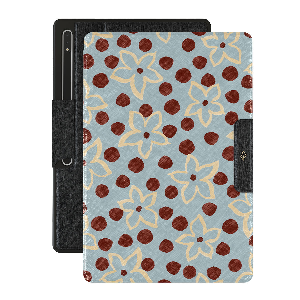The Frutaria Samsung Galaxy Tab S10 Ultra design: retro surf motel wallpaper meets vintage ceramics. The soft florals, earthy dots, and cool-toned palette give major “forgotten seaside town in the ‘70s” energy.