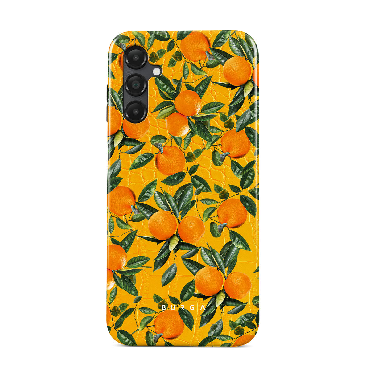 Orange Lemonade Samsung Galaxy A25 phone case showcases a unique combination of vibrant orange croco design with plenty of mouth-watering oranges on top. With this energetic design, protect your phone and keep your spirits up.