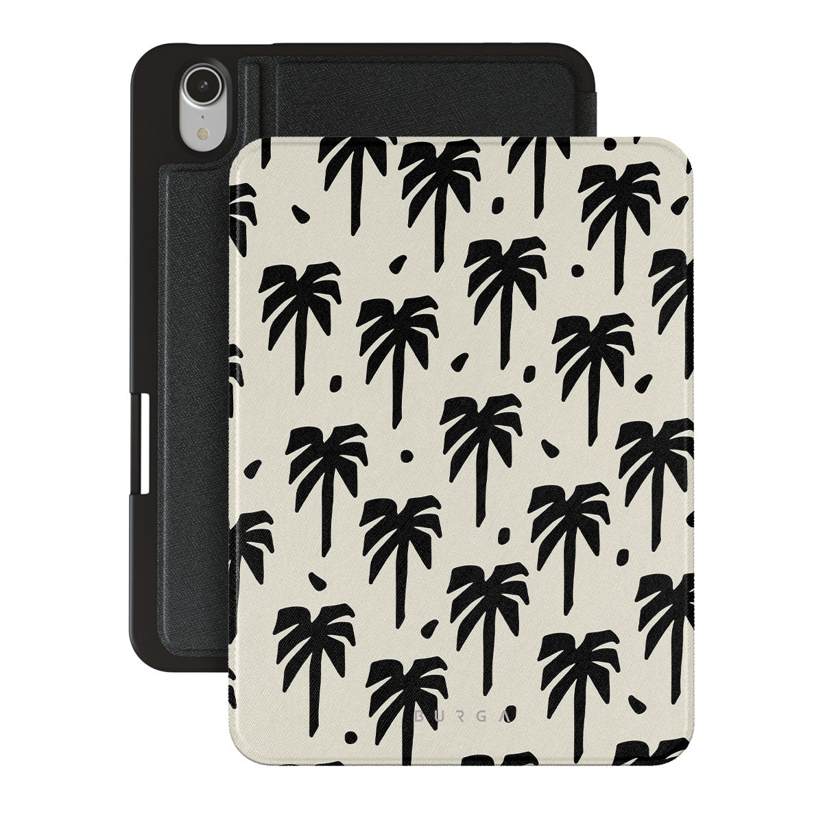 A peaceful haven right at your fingertips. The design contrasts black palm silhouettes against a calming light backdrop. Our Paraíso iPad Mini 8.3 (A17 Pro/6th Gen) 2021 folio case is your passport to an everlasting tropical escape.