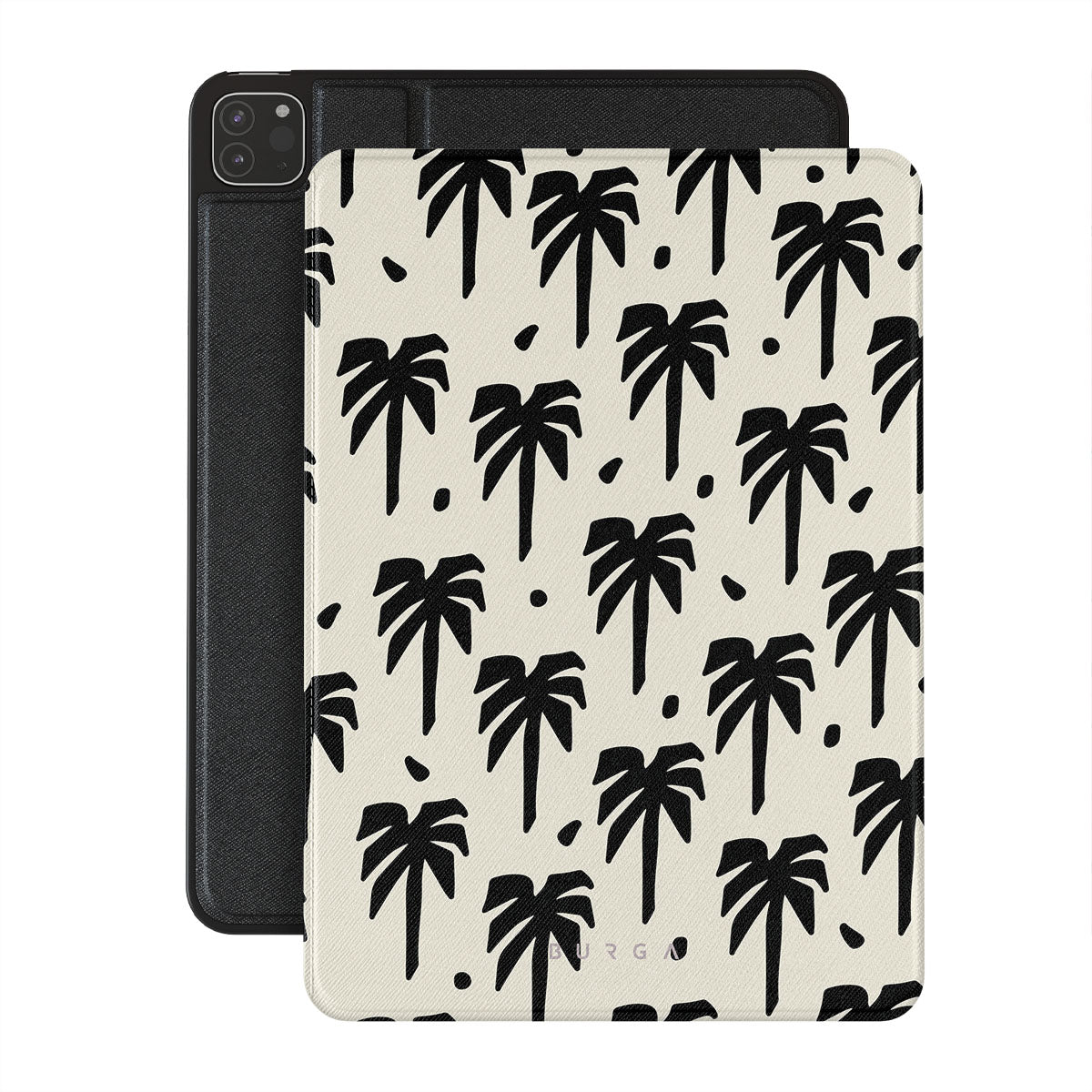 A peaceful haven right at your fingertips. The design contrasts black palm silhouettes against a calming light backdrop. Our Paraíso iPad Pro 12.9 (4th/3rd Gen) folio case is your passport to an everlasting tropical escape.