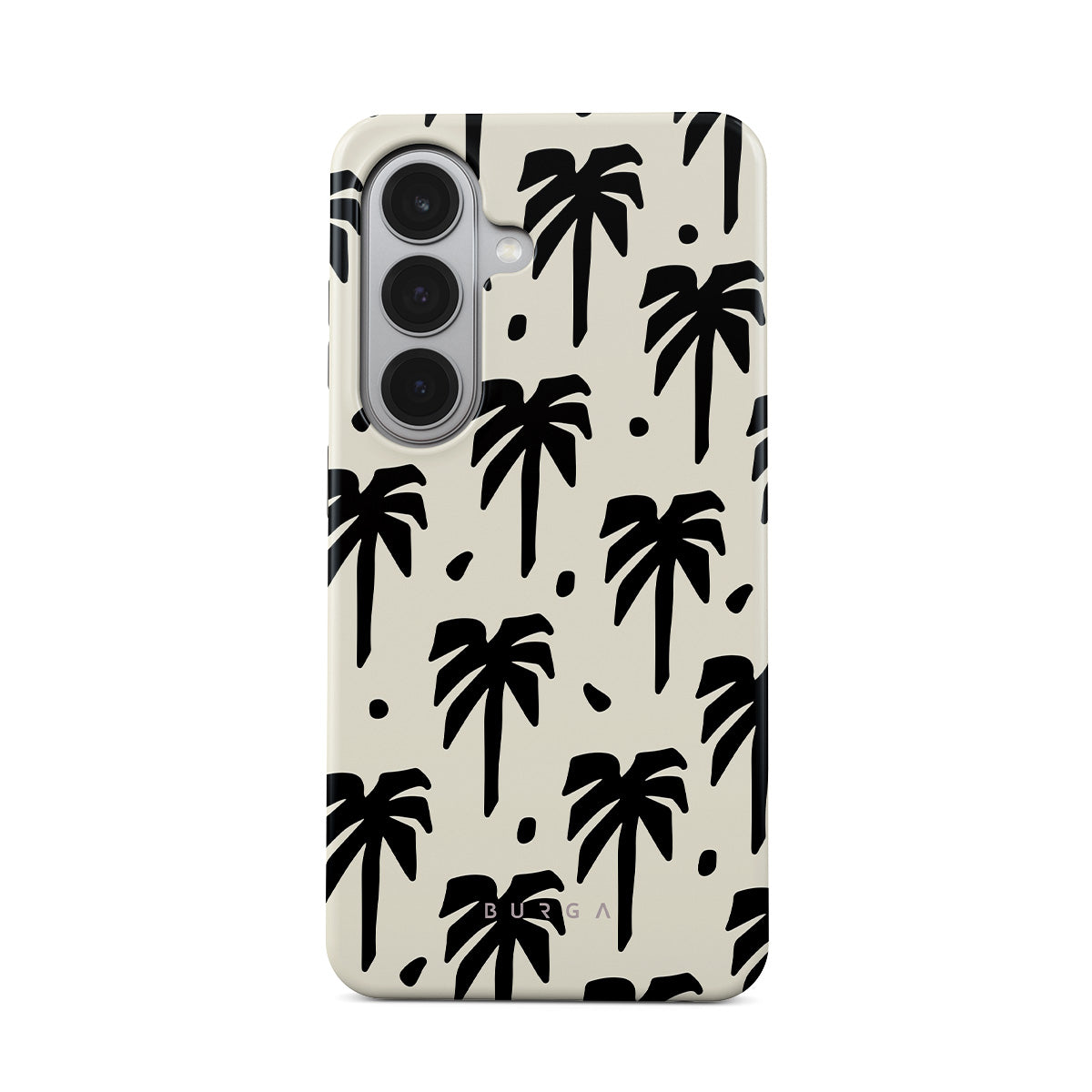 A peaceful haven right at your fingertips. The design contrasts black palm silhouettes against a calming light backdrop. Our Paraíso Samsung Galaxy S26 phone case is your passport to an everlasting tropical escape.