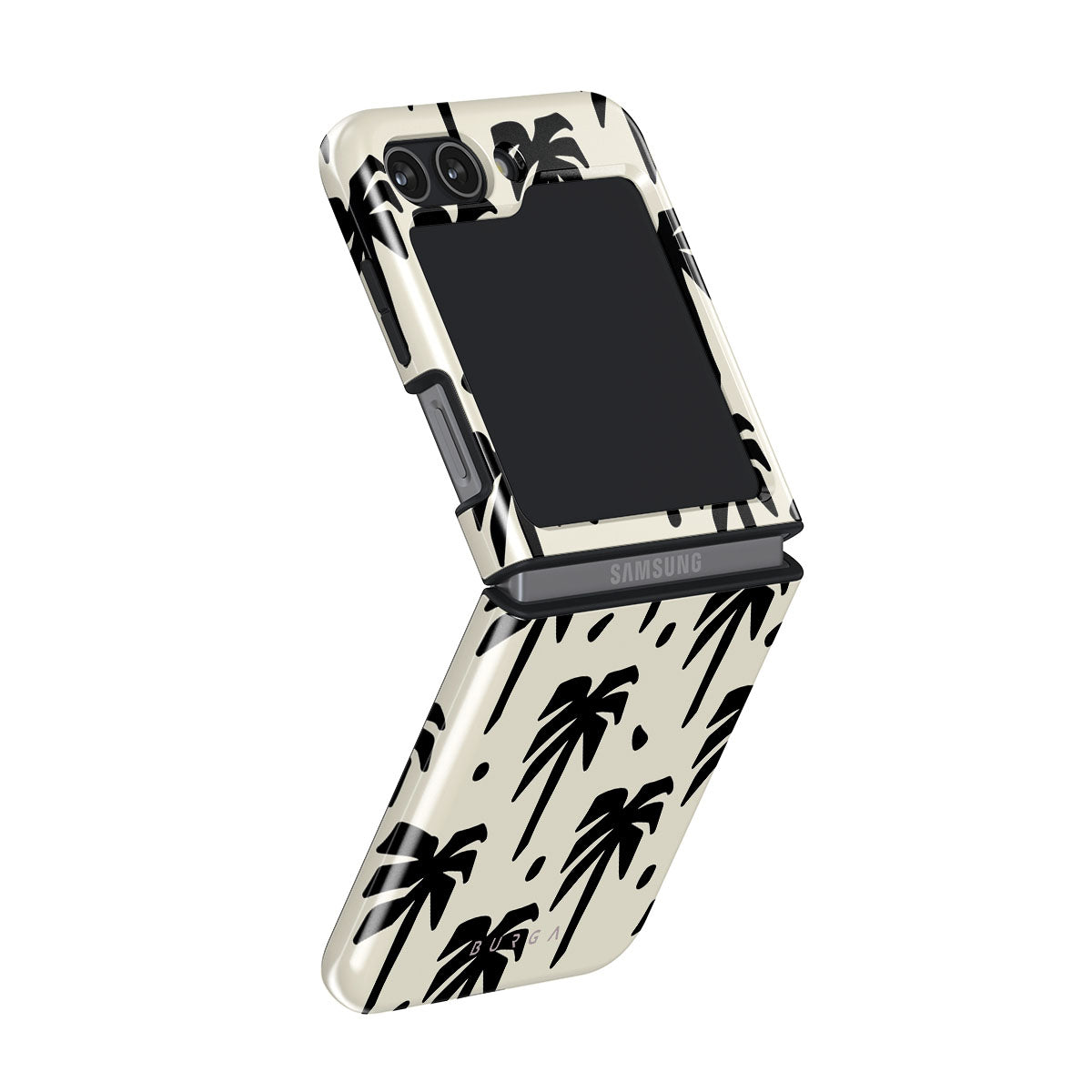 A peaceful haven right at your fingertips. The design contrasts black palm silhouettes against a calming light backdrop. Our Paraíso Samsung Galaxy Z Flip 5 phone case is your passport to an everlasting tropical escape.
