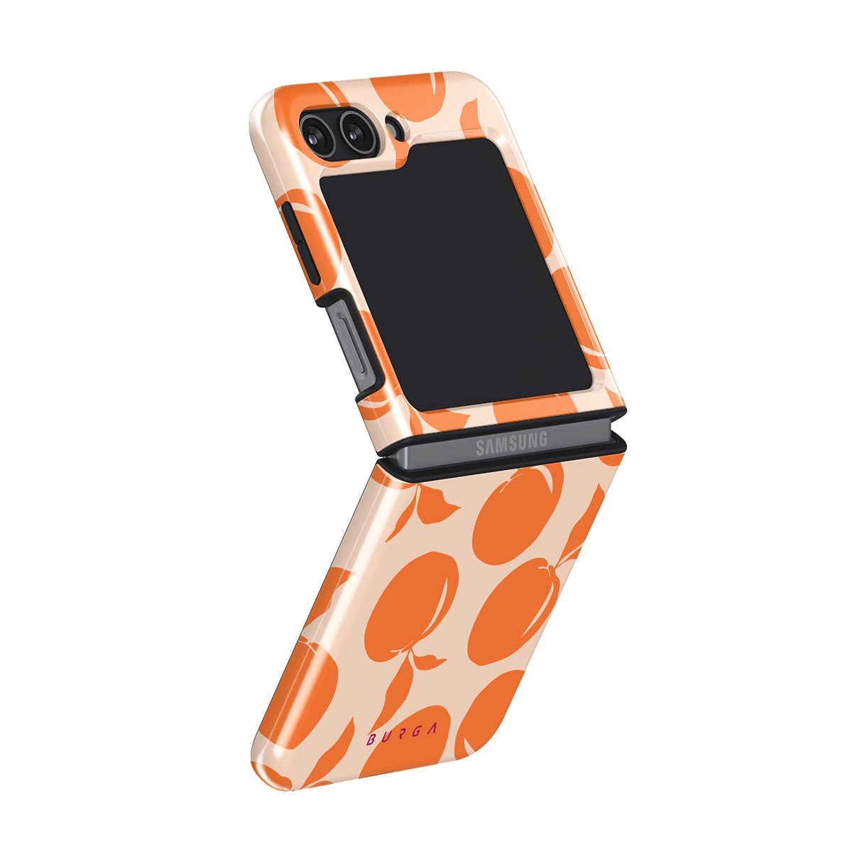 Picture a sun-soaked grove where ripe, juicy peaches glow with a radiant orange vibrance, their succulent aroma filling the warm air. Our Peach Fuzz design infuses your Samsung Galaxy Z Flip 5 phone case with a lively, sun-kissed charm, perfectly capturing the essence of carefree, joyful summer days.