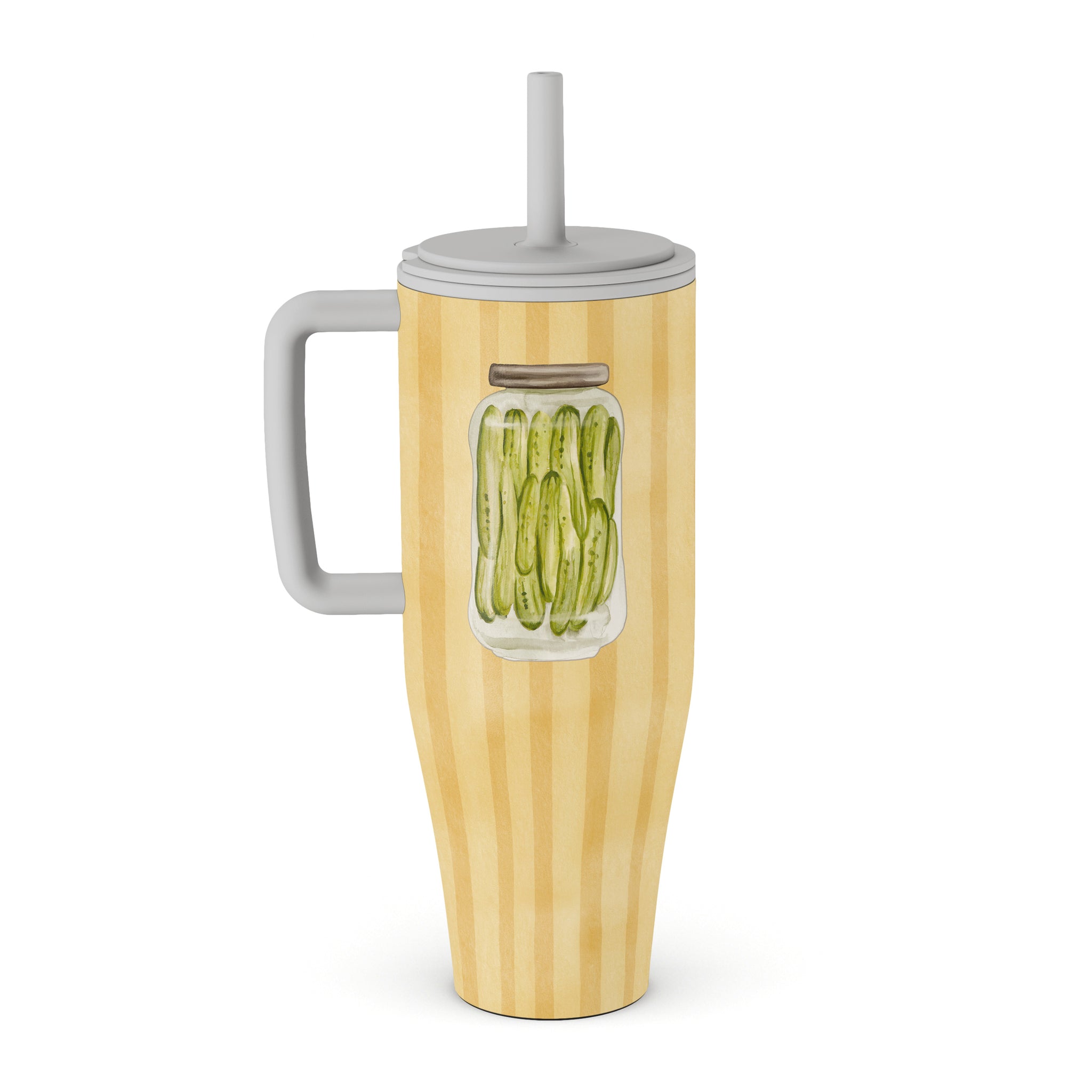This design features: pickles, pickle jar, vegetables illustration