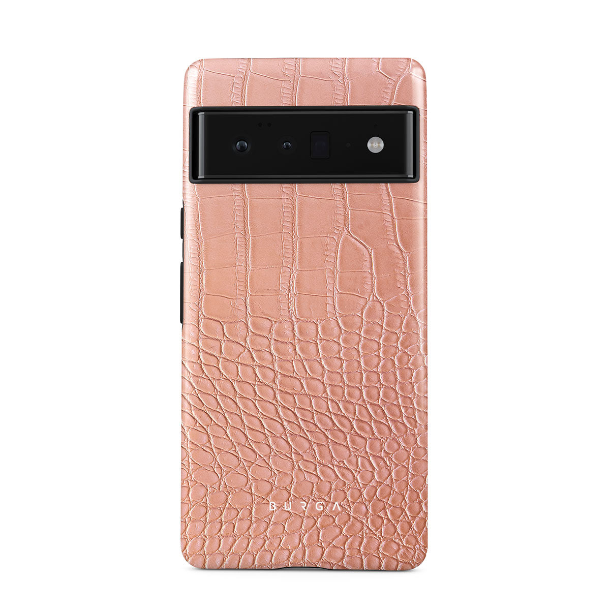 Our Pink Croco Google Pixel 6 Pro phone case features a classic crocodile design reimagined and showcased in a soft coral shade. The new take on the dangerous animal print will add a touch of softness to your style while simultaneously offering heavy-duty protection to your device.