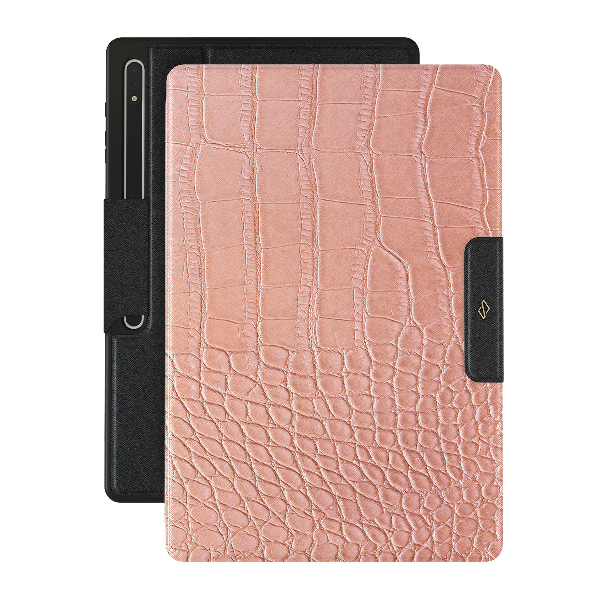Our Pink Croco-it is a printed pattern * Samsung Galaxy Tab S10 Ultra folio case features a classic crocodile design reimagined and showcased in a soft coral shade. The new take on the dangerous animal print will add a touch of softness to your style while simultaneously offering heavy-duty protection to your device.