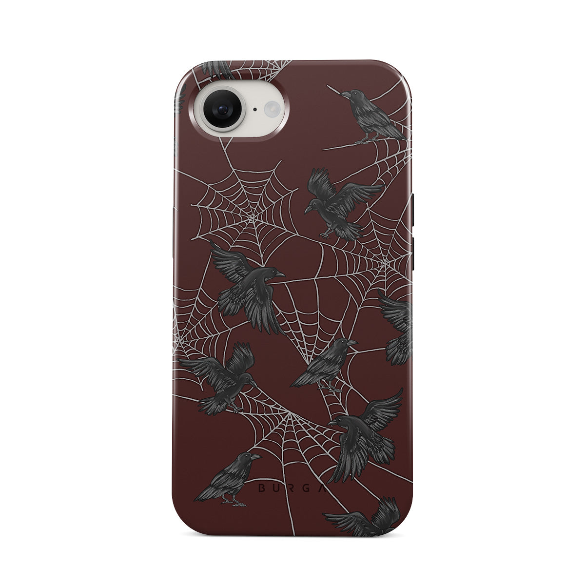 This design features: crows, birds, spiderweb