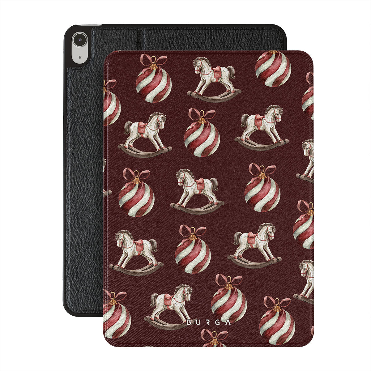 Jingle all the way with this playful iPad Air 11 (7th/6th Gen) folio case design. Featuring rocking horses and candy-striped bells, our Rocking Around design transports you back to childhood moments of decorating the tree and waiting for Santa. It’s the ultimate throwback to vintage Christmas charm.