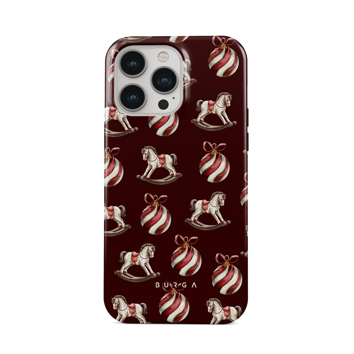 Jingle all the way with this playful iPhone 13 Pro Max phone case design. Featuring rocking horses and candy-striped bells, our Rocking Around design transports you back to childhood moments of decorating the tree and waiting for Santa. It’s the ultimate throwback to vintage Christmas charm.