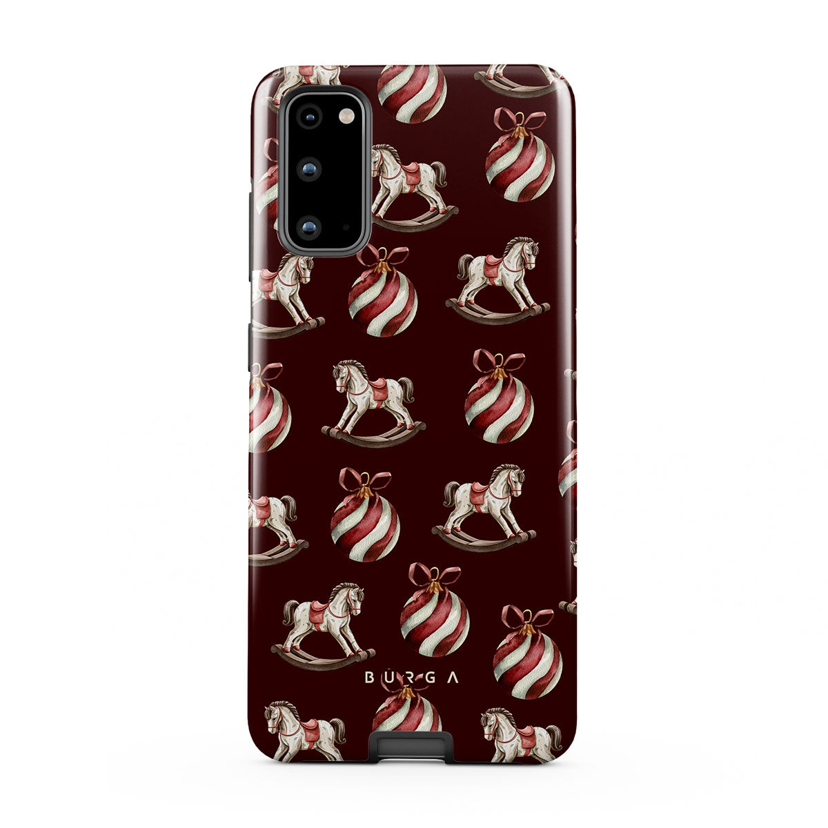 Jingle all the way with this playful Samsung Galaxy S20 FE 4G / 5G phone case design. Featuring rocking horses and candy-striped bells, our Rocking Around design transports you back to childhood moments of decorating the tree and waiting for Santa. It’s the ultimate throwback to vintage Christmas charm.