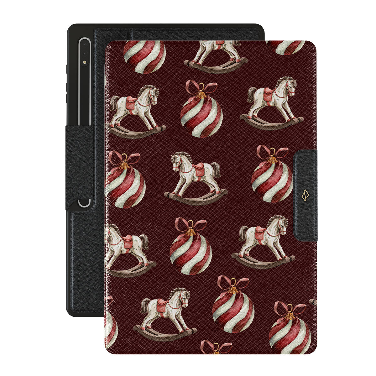 Jingle all the way with this playful Samsung Galaxy Tab S10 Ultra folio case design. Featuring rocking horses and candy-striped bells, our Rocking Around design transports you back to childhood moments of decorating the tree and waiting for Santa. It’s the ultimate throwback to vintage Christmas charm.