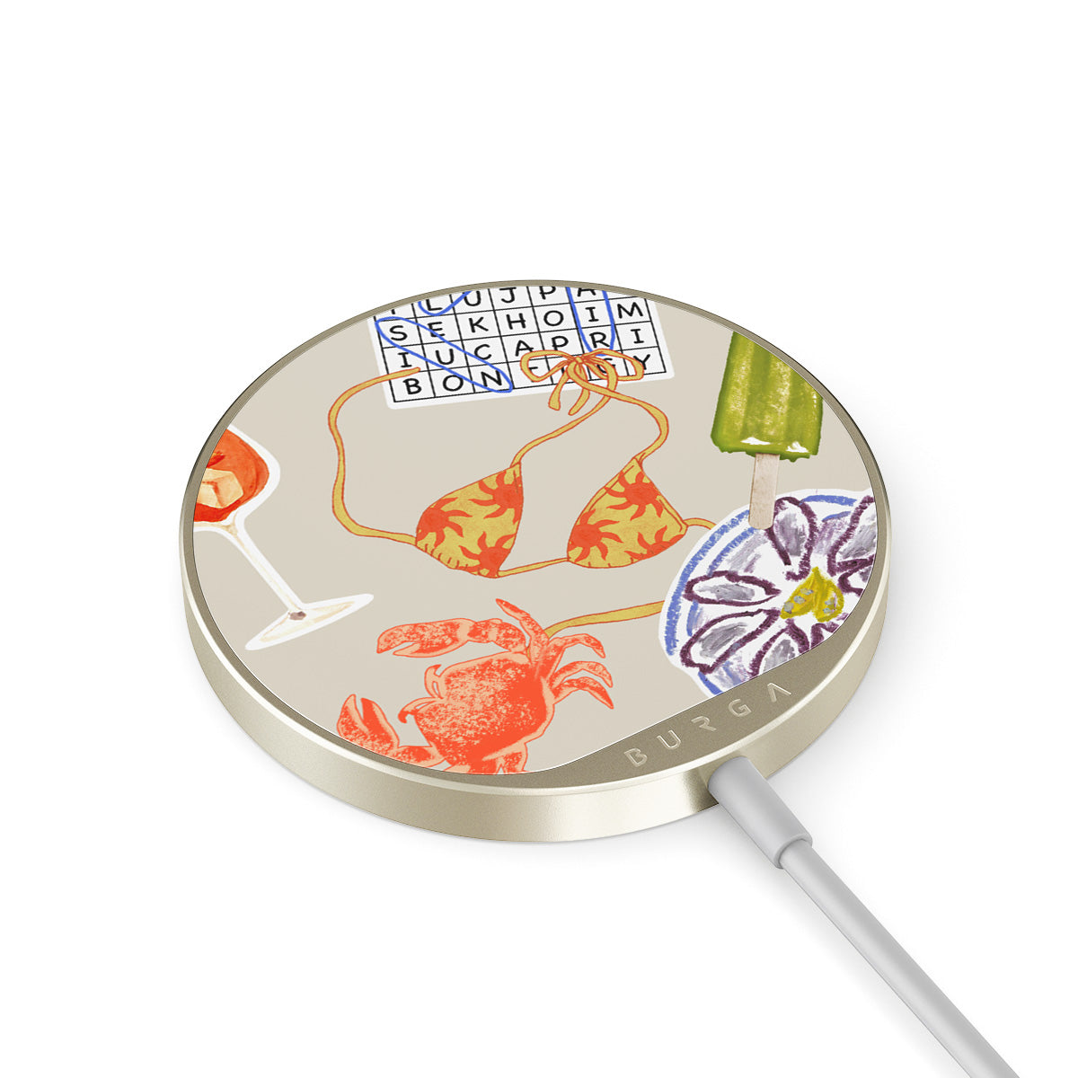 The 1.5m integrated cord makes it easy to charge wherever you are — at the office, chillin’ on the sofa, or killing time at the airport lounge. Plus, the BURGA glass back gives you 500+ prints to choose from, so your charger looks as good as your case.