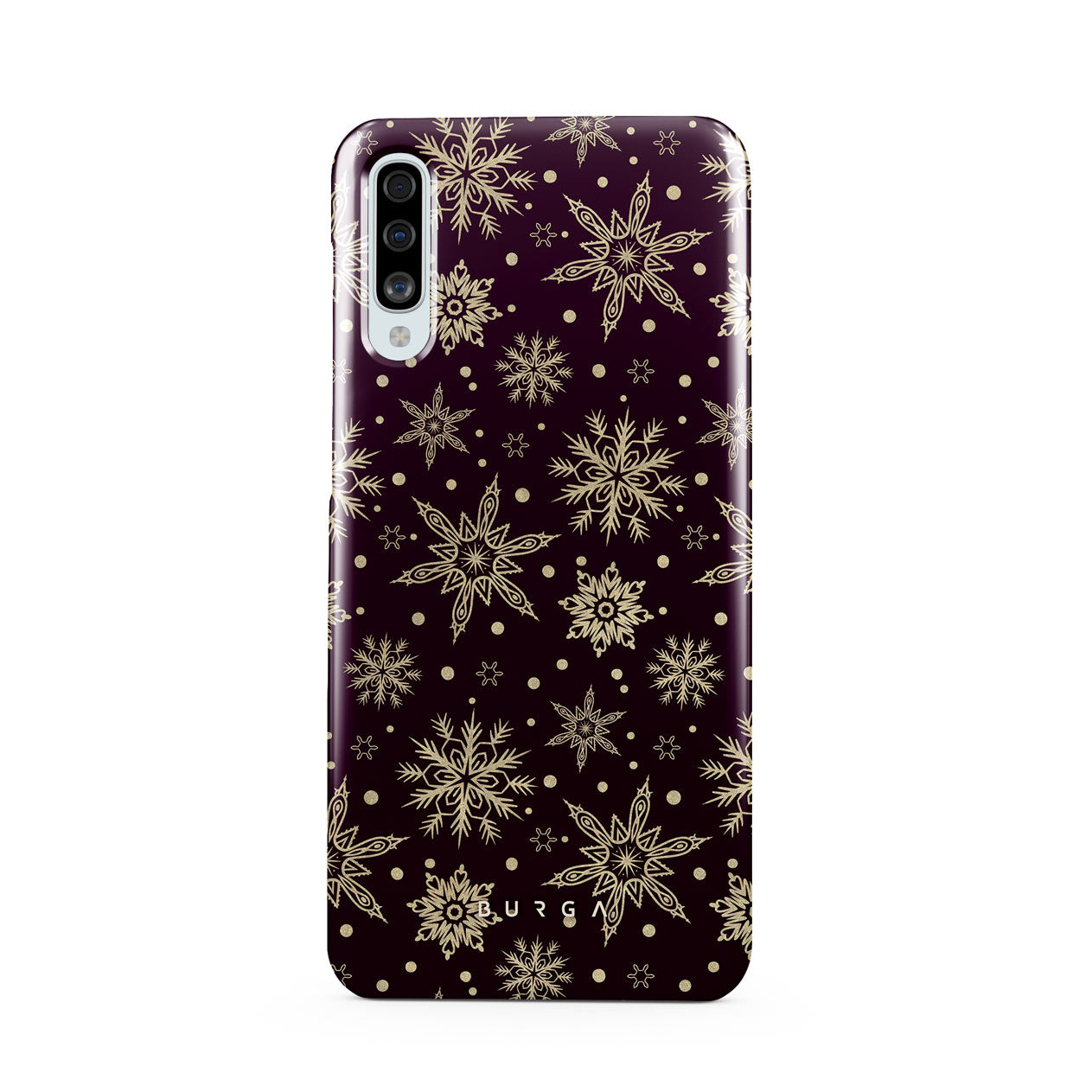 Magical, mythical, and mesmerizing, our Sleeping Beauty Samsung Galaxy A50 phone case is precisely that. The deep burgundy background emphasizes the elegance of the intricate patterns of golden snowflakes. Add a touch of expensive elegance to your device while keeping it safe from all the dangerous falls.