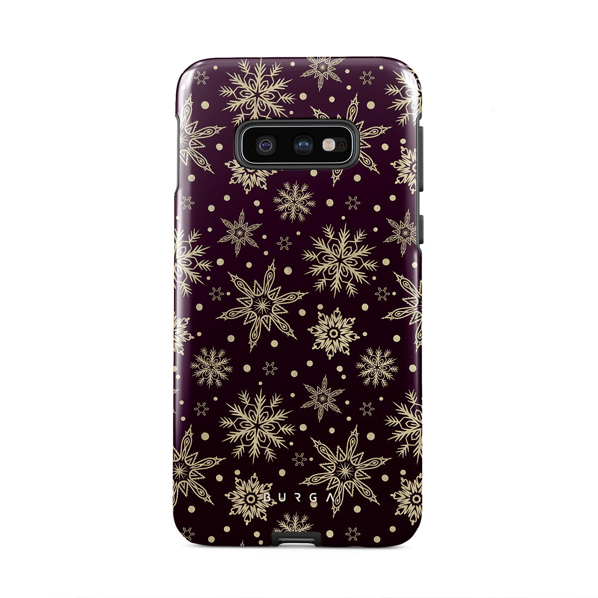 Magical, mythical, and mesmerizing, our Sleeping Beauty Samsung Galaxy S10E phone case is precisely that. The deep burgundy background emphasizes the elegance of the intricate patterns of golden snowflakes. Add a touch of expensive elegance to your device while keeping it safe from all the dangerous falls.