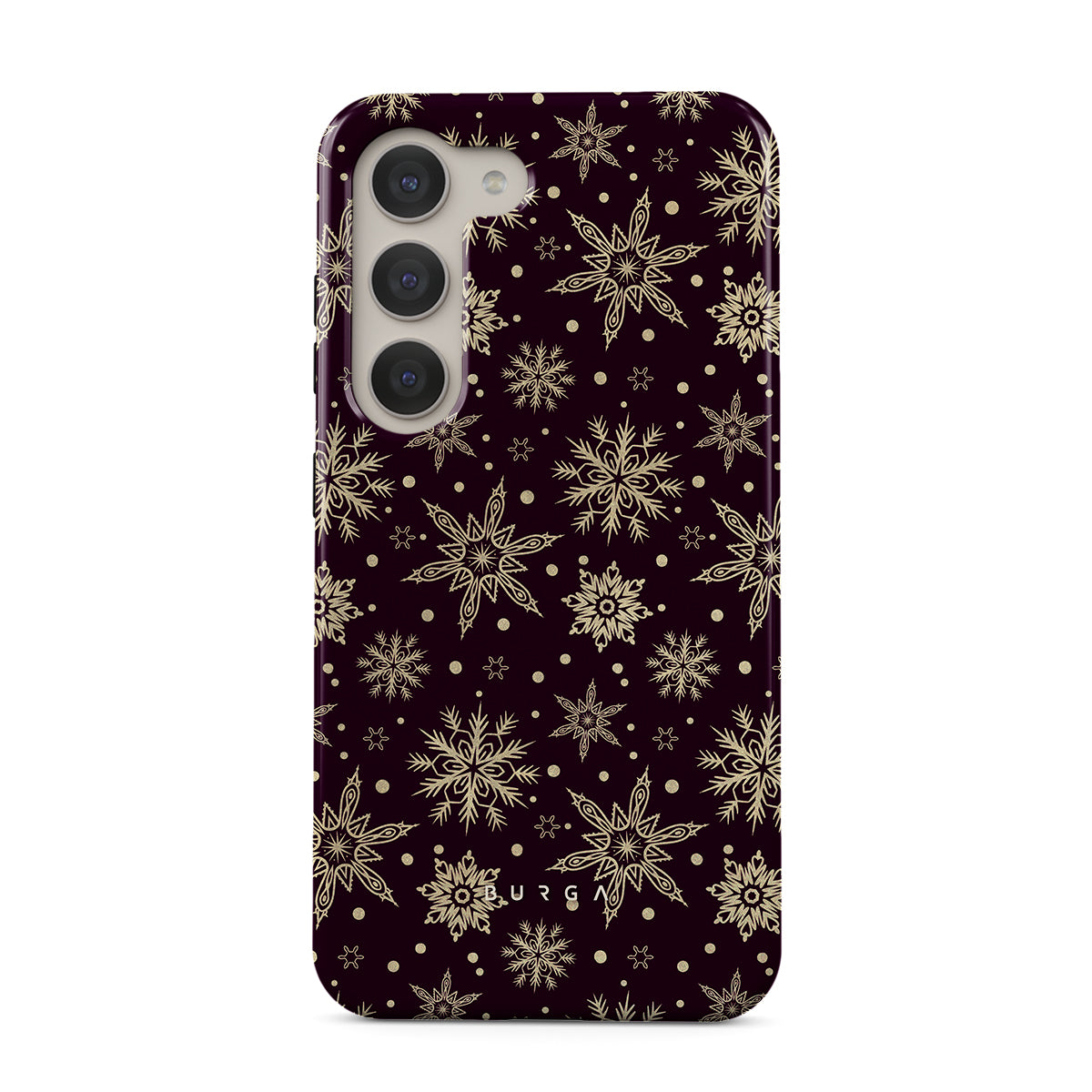Magical, mythical, and mesmerizing, our Sleeping Beauty Samsung Galaxy S23 phone case is precisely that. The deep burgundy background emphasizes the elegance of the intricate patterns of golden snowflakes. Add a touch of expensive elegance to your device while keeping it safe from all the dangerous falls.
