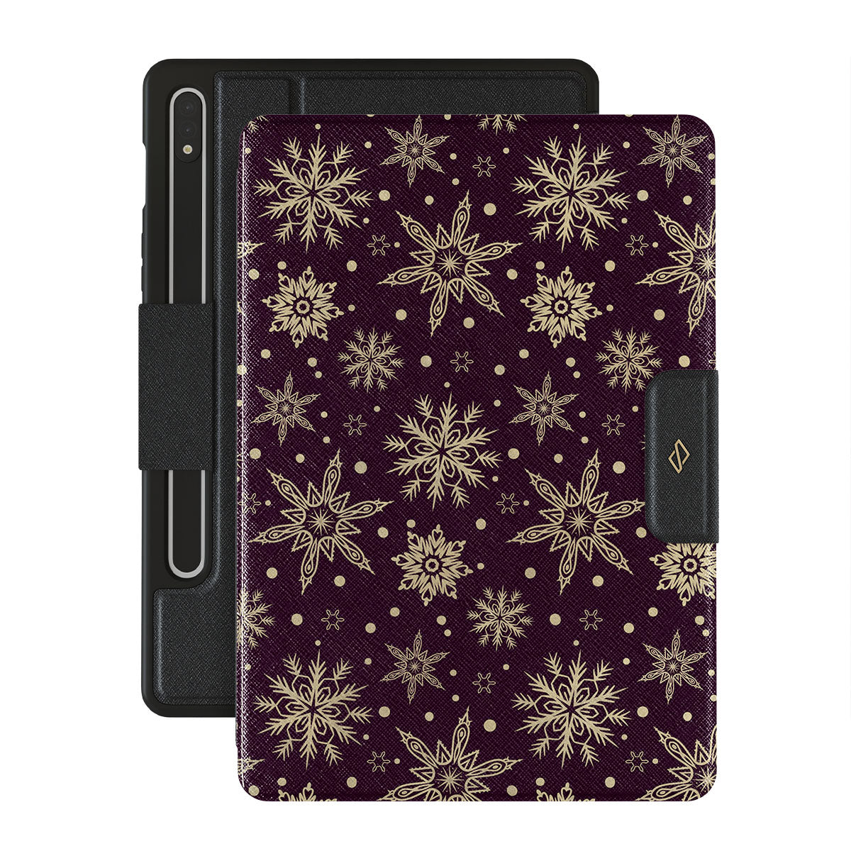 Magical, mythical, and mesmerizing, our Sleeping Beauty Samsung Galaxy Tab S8+/S7+/S7 FE folio case is precisely that. The deep burgundy background emphasizes the elegance of the intricate patterns of golden snowflakes. Add a touch of expensive elegance to your device while keeping it safe from all the dangerous falls.