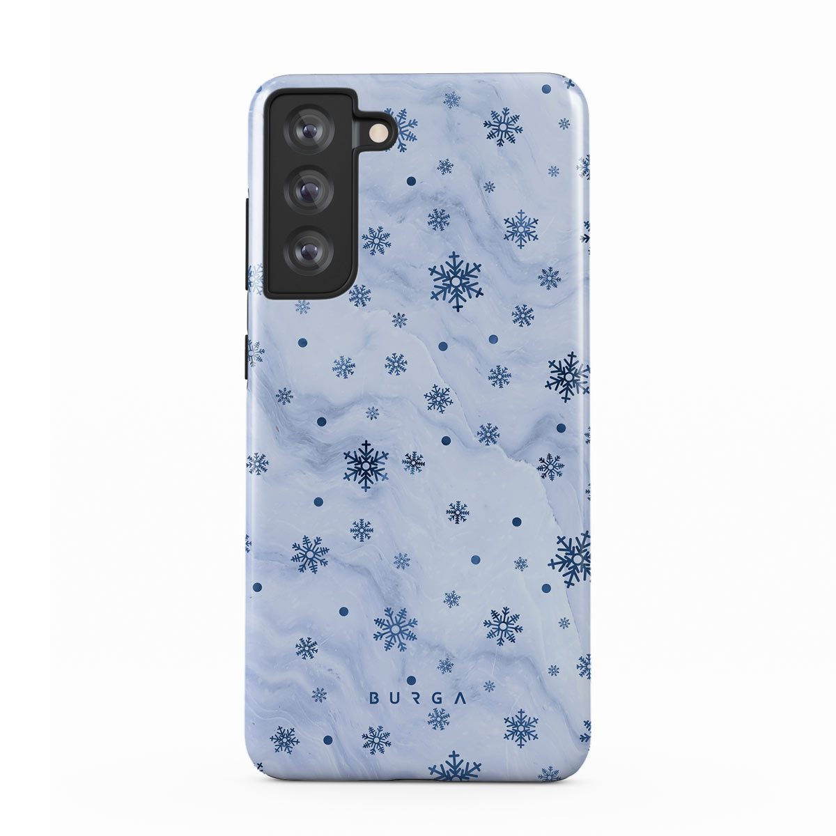 Our Ice Queen Samsung Galaxy S21 FE phone case combines the softest light blue marble design with a minimalistic snowflake pattern, this way creating the ever-mesmerizing effect of elegant snowflakes dance that only the magical winter days are known for. Keep your device looking elegant while keeping it safe and sound.