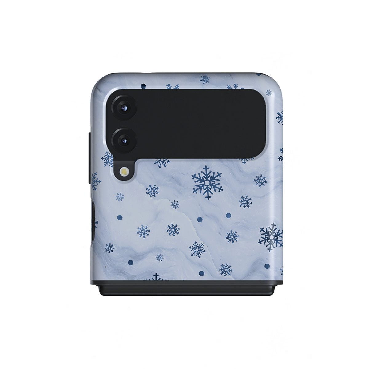 Our Ice Queen Samsung Galaxy Z Flip 3 phone case combines the softest light blue marble design with a minimalistic snowflake pattern, this way creating the ever-mesmerizing effect of elegant snowflakes dance that only the magical winter days are known for. Keep your device looking elegant while keeping it safe and sound.
