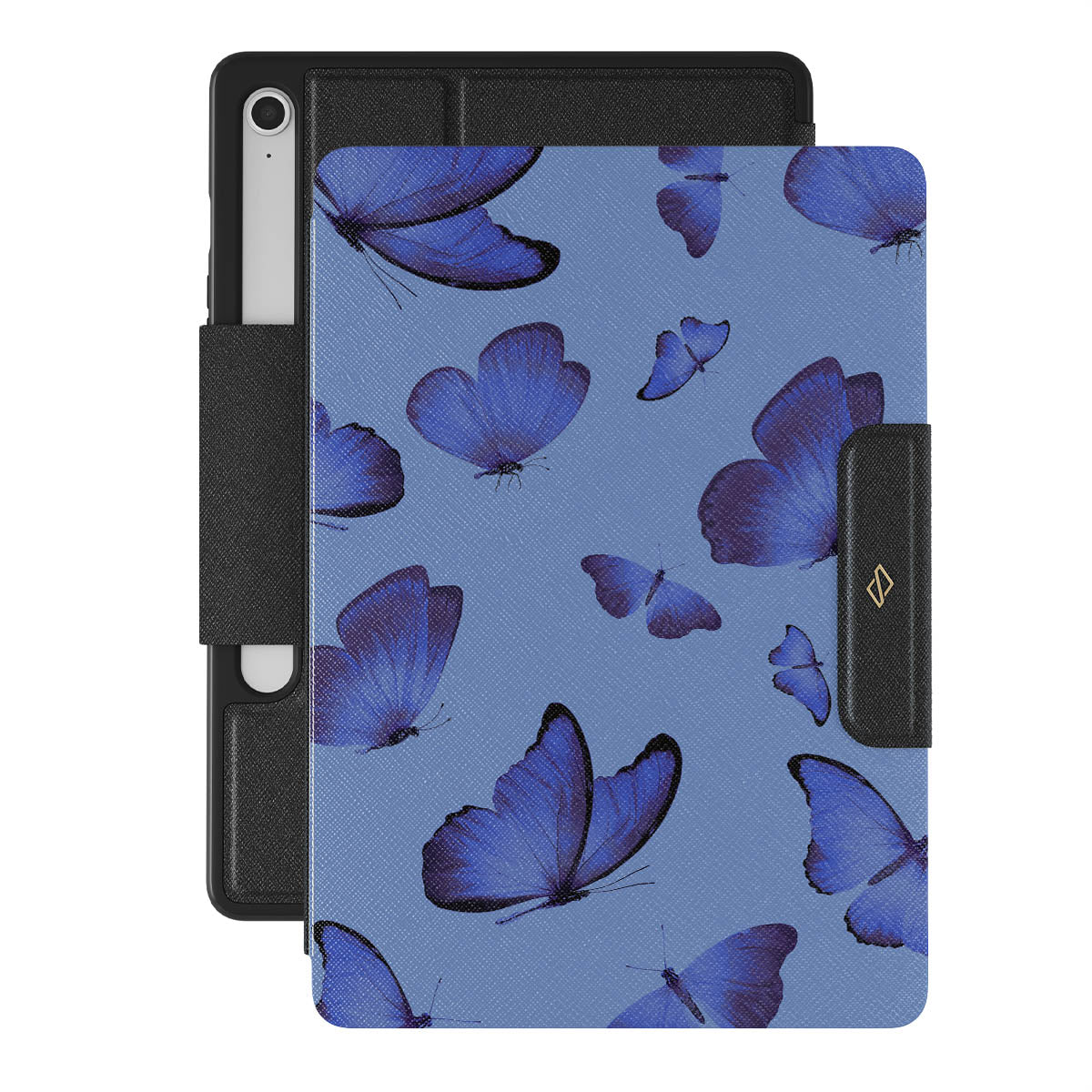 Bright blue butterflies dance across a sky-blue expanse, a visual representation of freedom and transformation. Our Spring Court Samsung Galaxy Tab S10 FE folio case design symbolizes the soul's eternal dance with change, each flutter a step towards becoming who we are meant to be.
