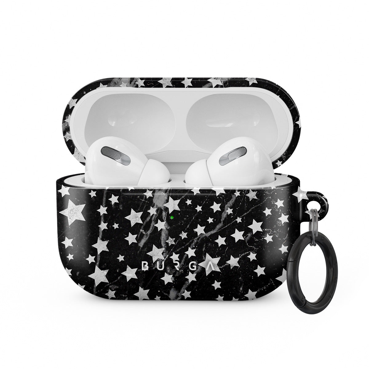 The charming star pattern of our Starry Night Apple Airpods Pro case cover meets with a trendy black and white marble. The unique combination creates a design that will transform your AirPods case from a plain one to one ready to slay in the fashion world. Our case fits perfectly snug around Apple Airpods Pro . “Like a glove!” one might say. And it won’t disrupt the wireless charging capabilities of the newer model. There’s even an LED light indicator to prove it (don’t worry, wired charging still works, too). When fitted, the BURGA case will protect the delicate Apple Airpods Pro case beneath it from scratches, bumps, and drops while remaining scratch-free itself. Our signature design pattern prints are High Quality, and will never peel or fade away- thanks to our unique printing technology. And finally, a handy carabiner is there to make your life easier and more convenient: just snap it around your keys or belt loop and tackle the day head-on. Your music is right there by your side when you need it.