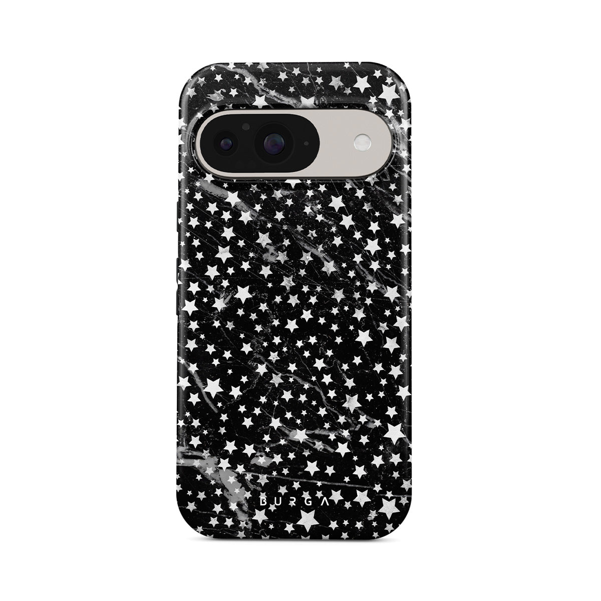 Google Pixel 10 Pro phone case is inspired by the sky above us. Here the charming star pattern meets with a trendy black and white marble. Add the unique combination to your wardrobe and transform your protective phone case into a fashion accessory.